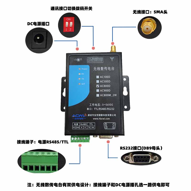 LoRaSX1278 Wireless Module serial port RS2232485 Communication Industrial Control PLC Communication AC800D Digital Transmission Station