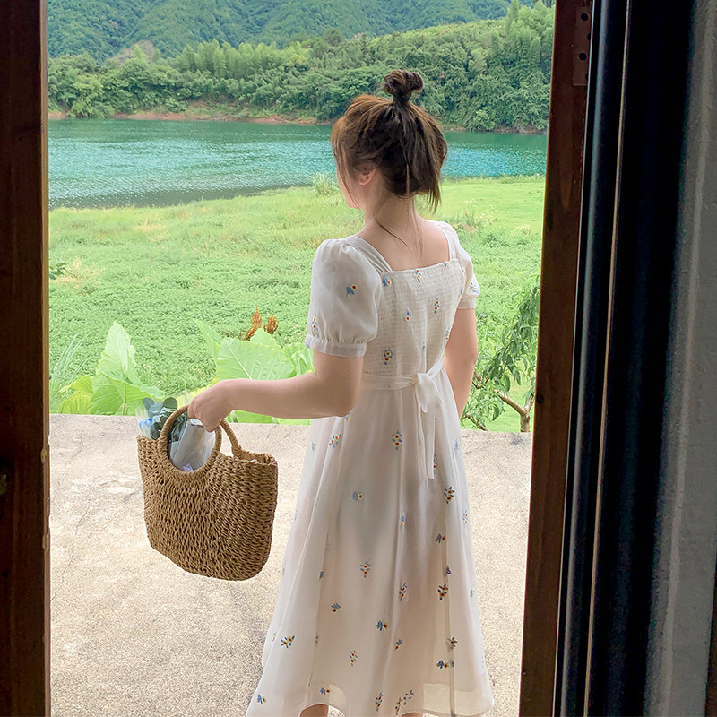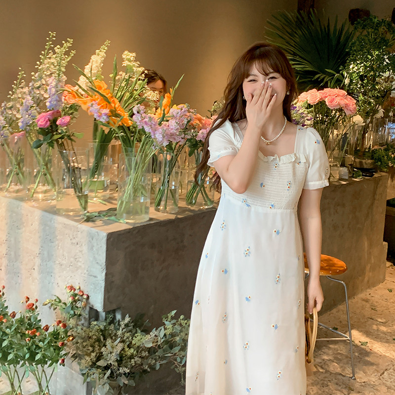 (Pet feedback until sales finished) fat mm square embroidery dress female loose and lean skirt