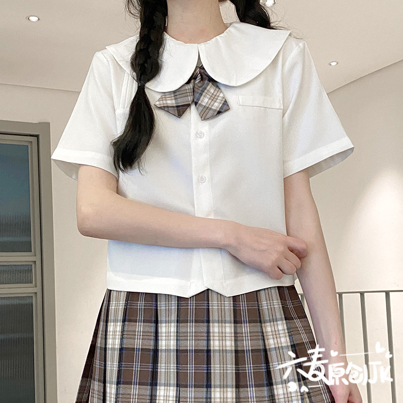 Japanese JK uniform shirt accordion pleats school supply sense original all-match embroidered short-sleeved student basic doll collar