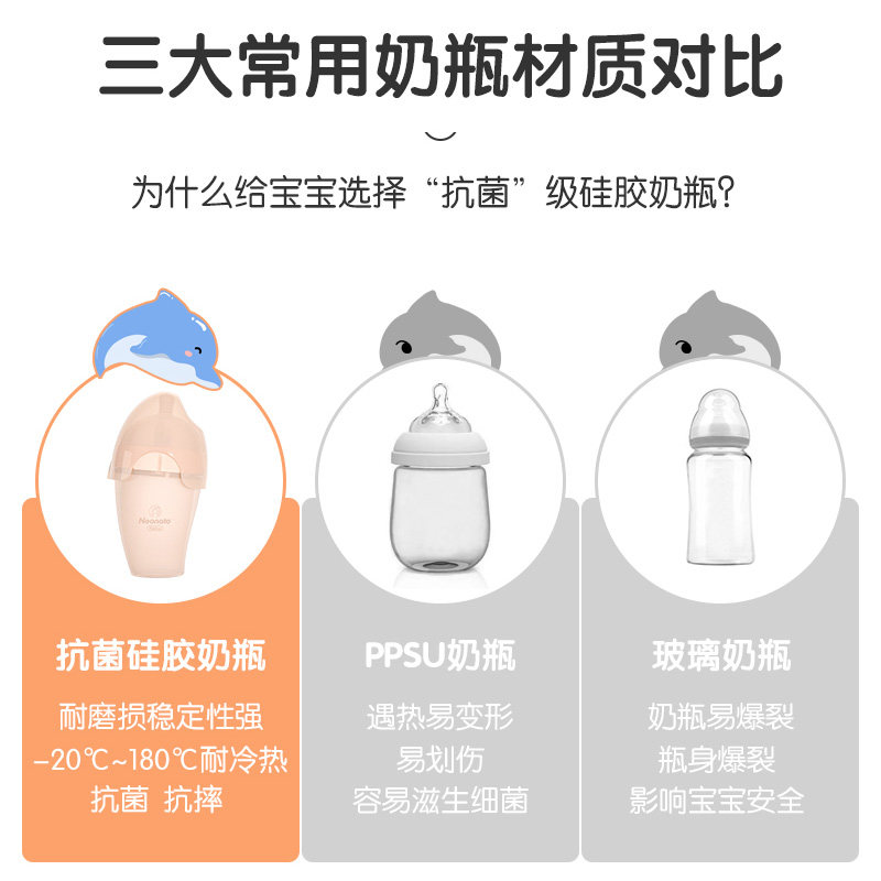 Lelailai silicone baby bottle newborn anti-flatulence anti-choking milk 1-2-3 years old antibacterial and anti-fall weaning artifact