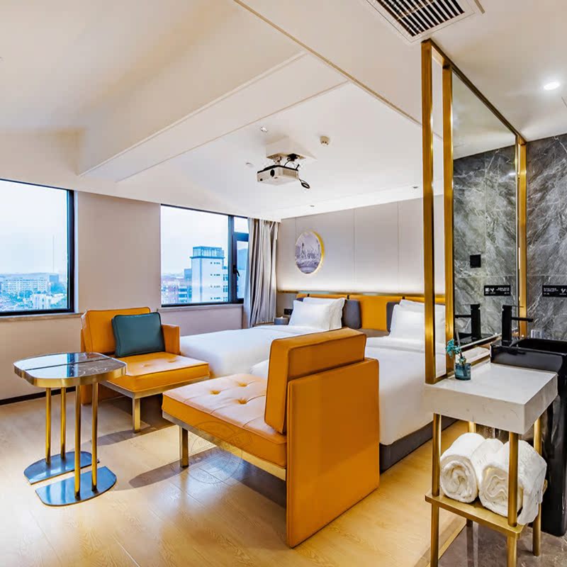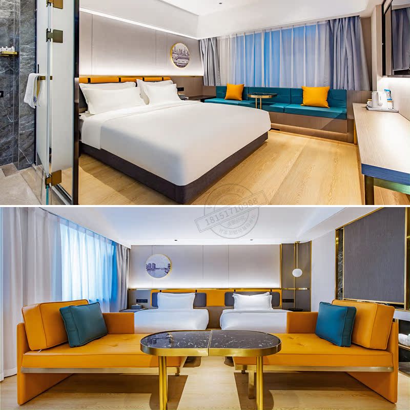 Hotel Furniture Guesthouse Brief Guest Room Design Computer Desk Background Frame Soft Bag Sofa Mark large bed full set of custom-made-Taobao