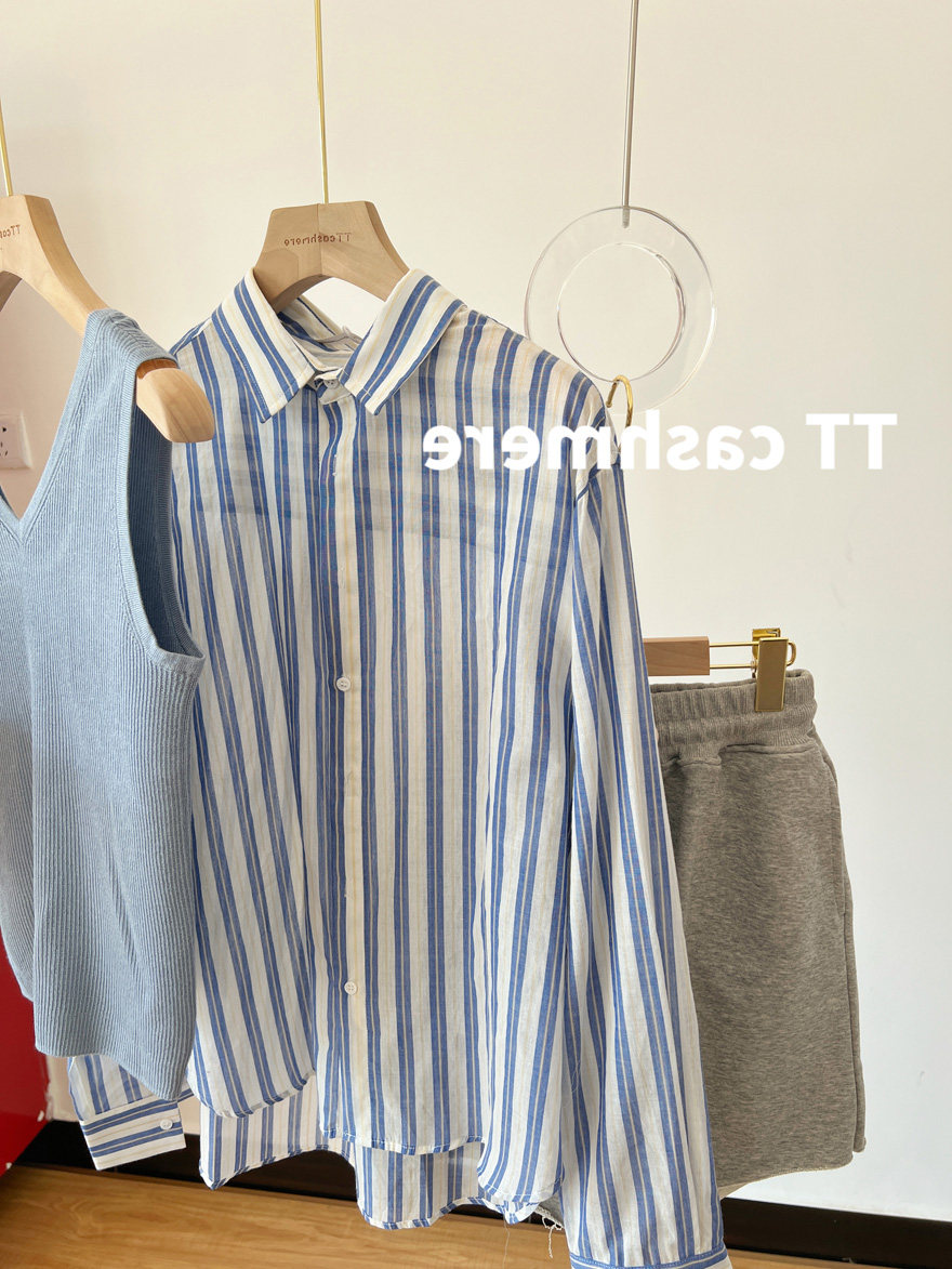 Light blue (2022 new not to spring long sleeves senior feel fashion foreign pistachio Summer spring autumn lady temperament retro loose gentle and sweet and fresh)