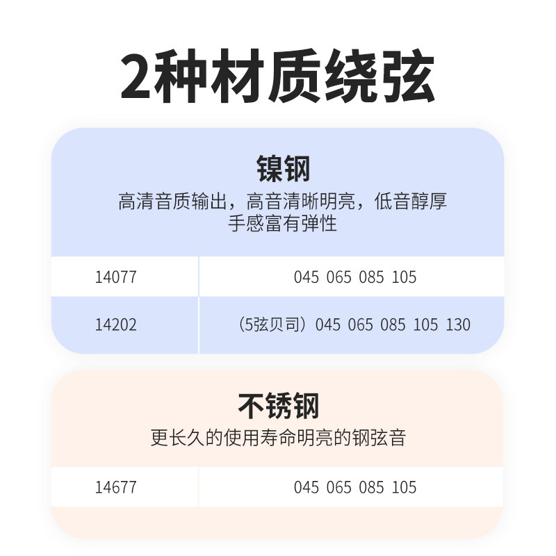 14077_nickel steel (045-105) 14677_stainless steel (045-105) 14052_nickel steel (045-100) 14002