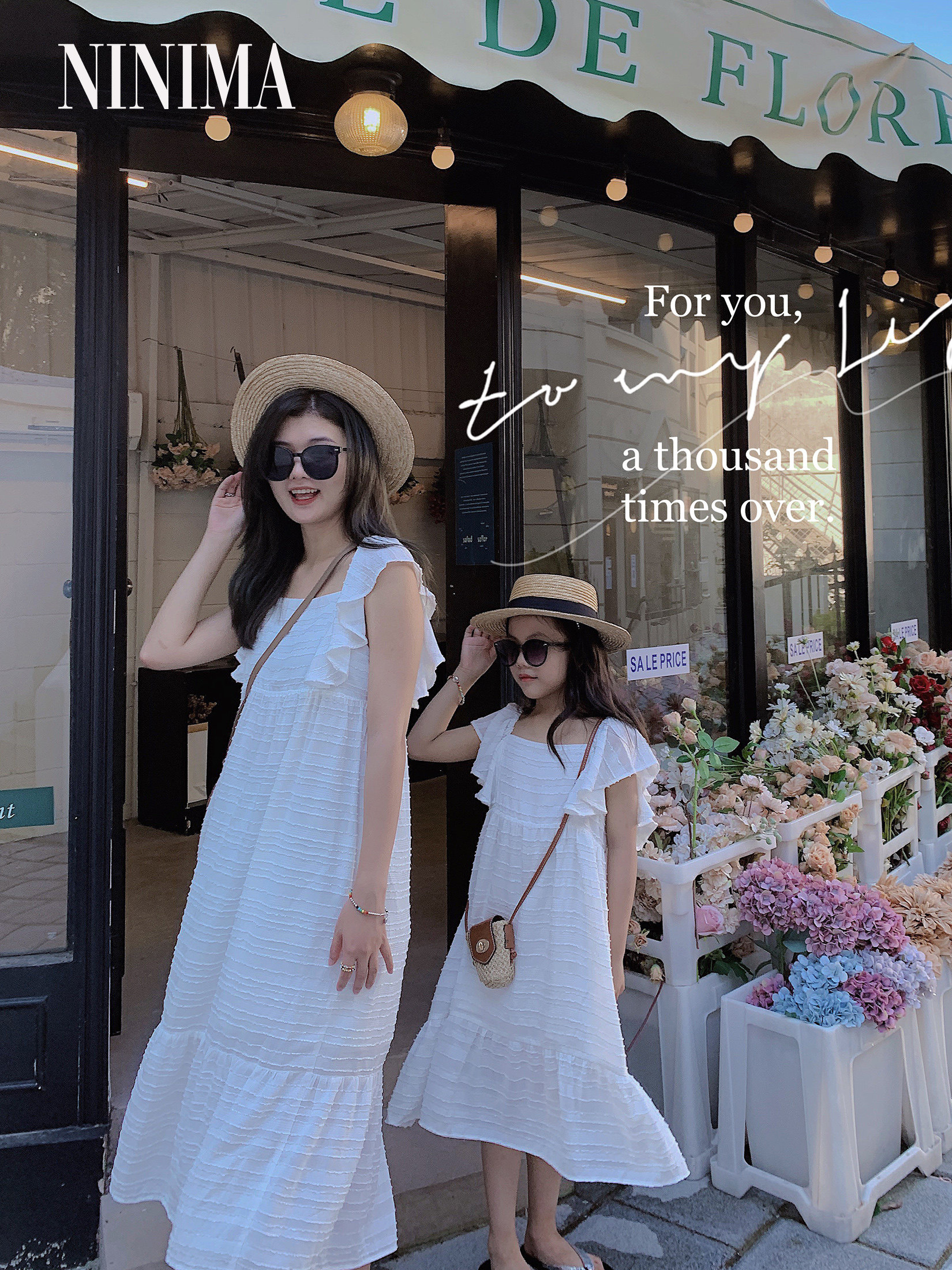 Niney Mom Summer Big Child Small Sleeve White Strip Snow Dress Lady Long Hanging Fashion Fashion