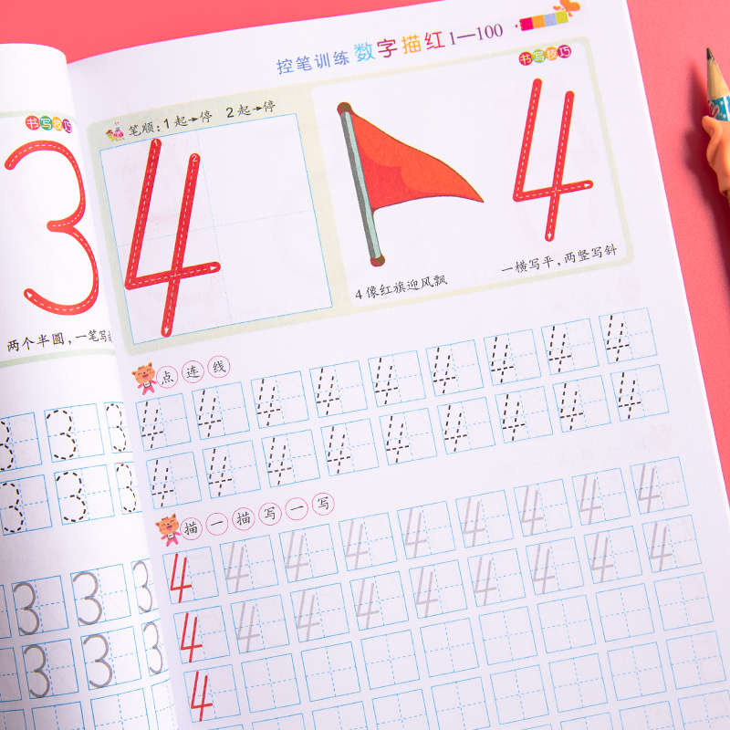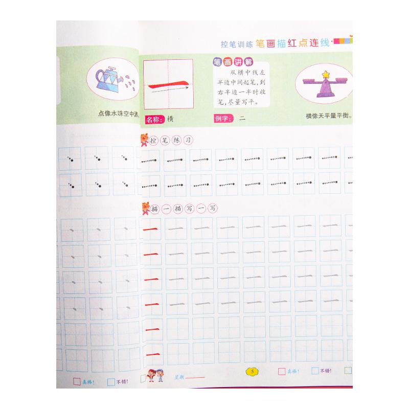 Control Pen Training Character Post Kindergarten Control Pen Entry Point Wire Drawing Line Children Preschool Class Large Class Writing Sketch Red Book