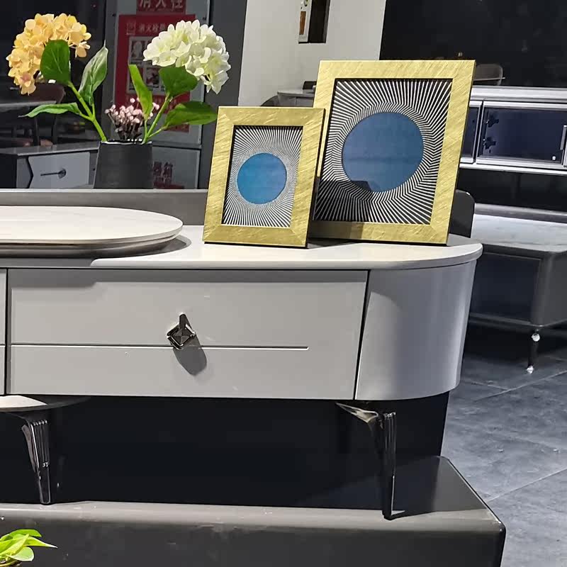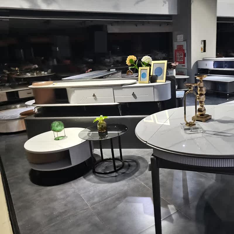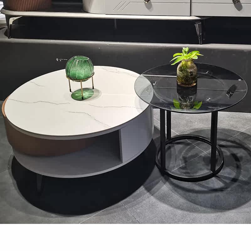 Slate coffee table TV cabinet combination rotating round modern minimalist white light luxury home small apartment ins Nordic