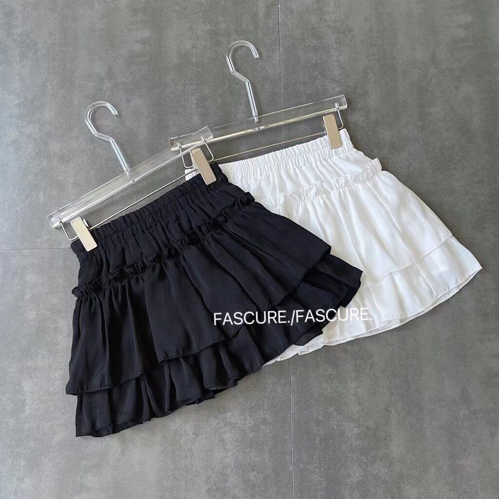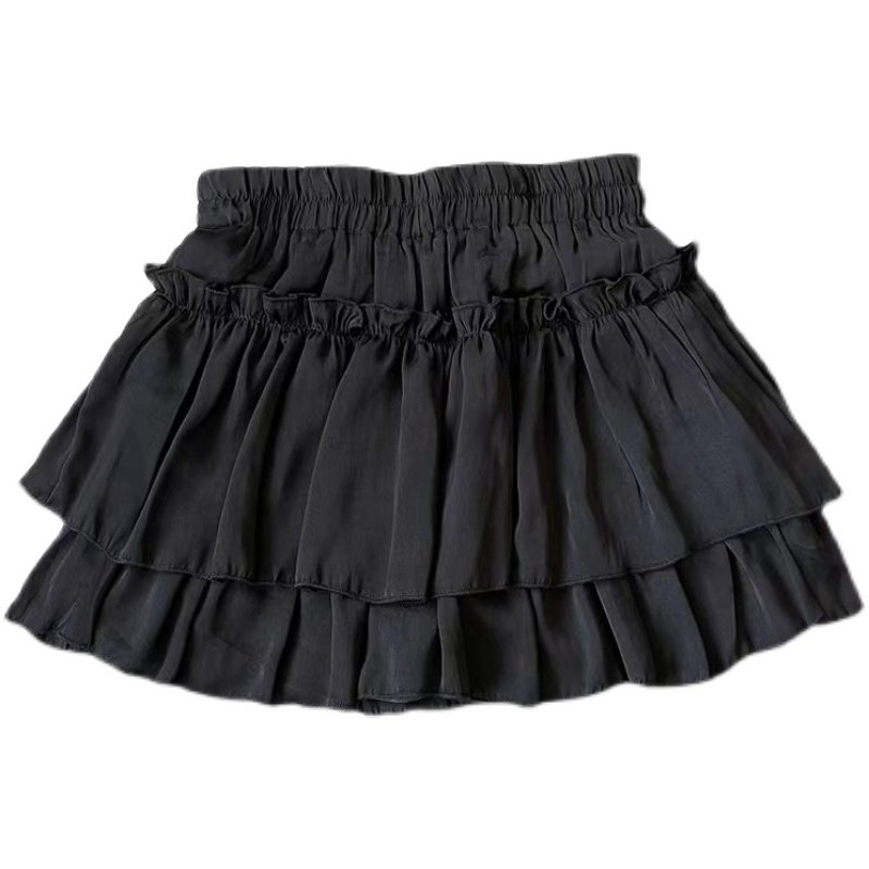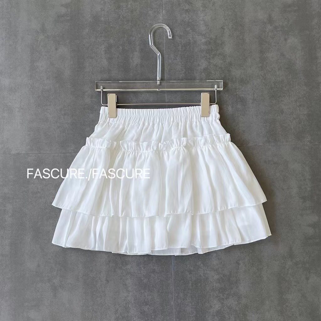 Autumn new pure desire style girlish feeling thin and long legs black and white chiffon fluffy cake skirt high waist skirt