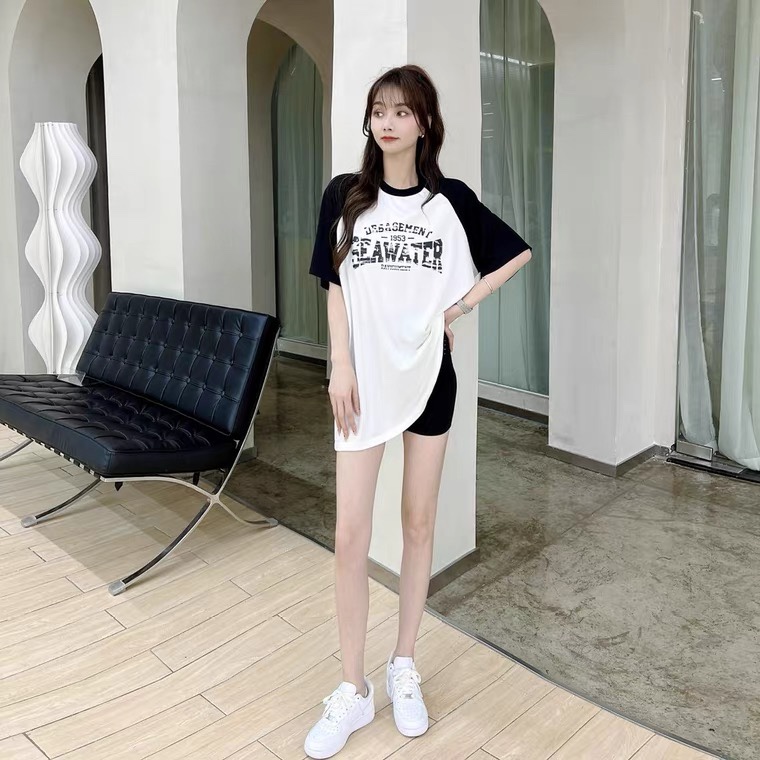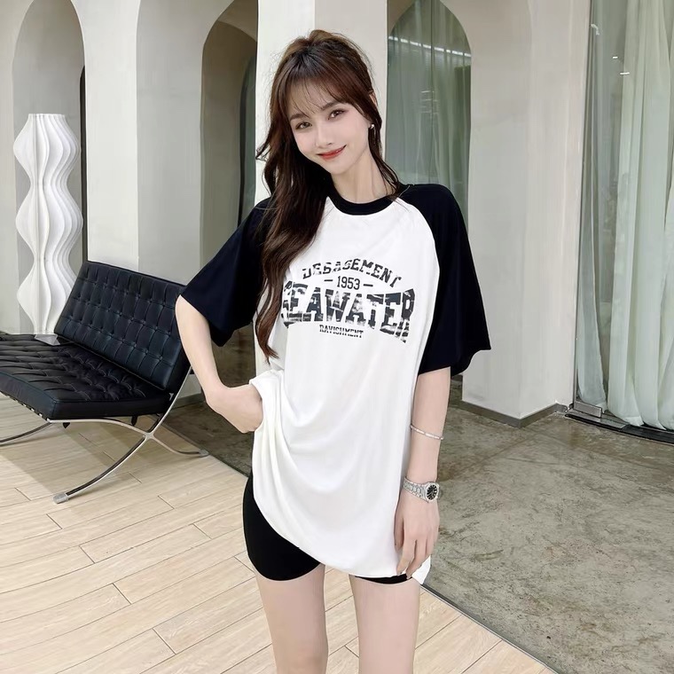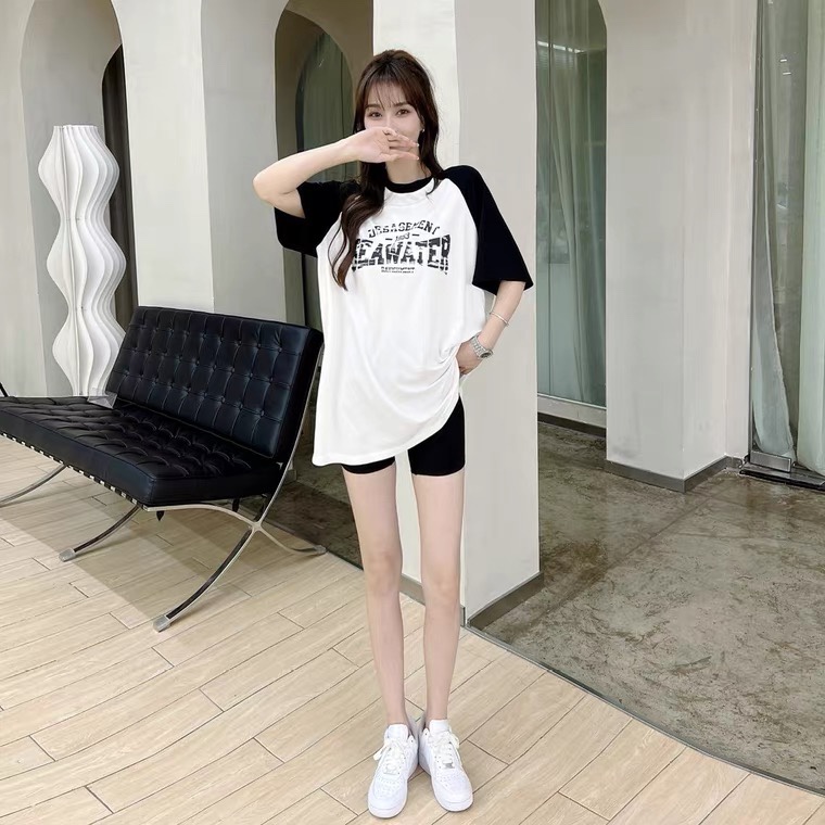 Kaka women's official flagship Han Edition summer letter printed half-sleeved T-shirt woman loose and tide