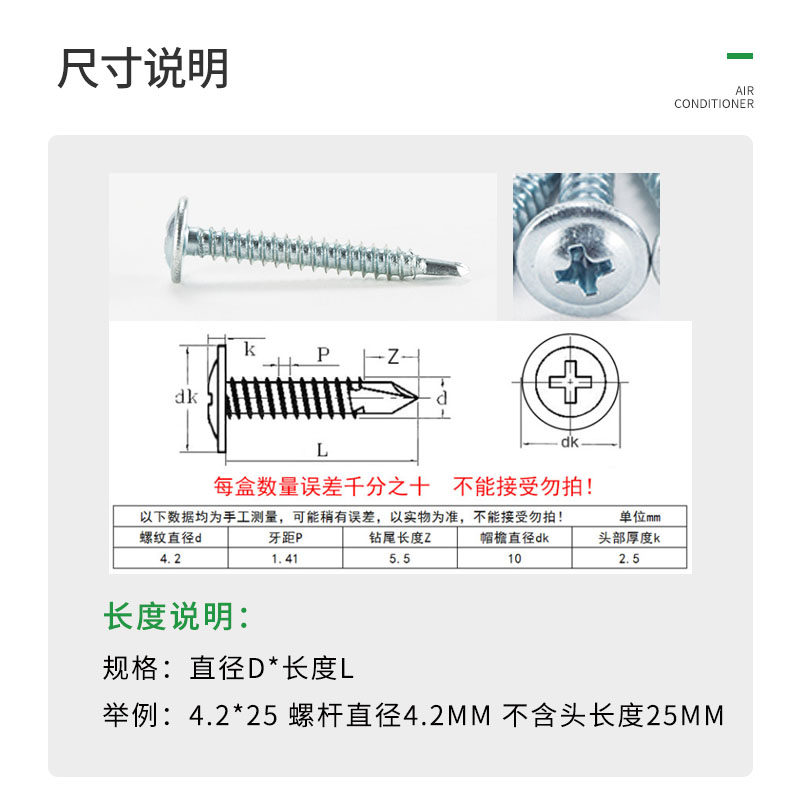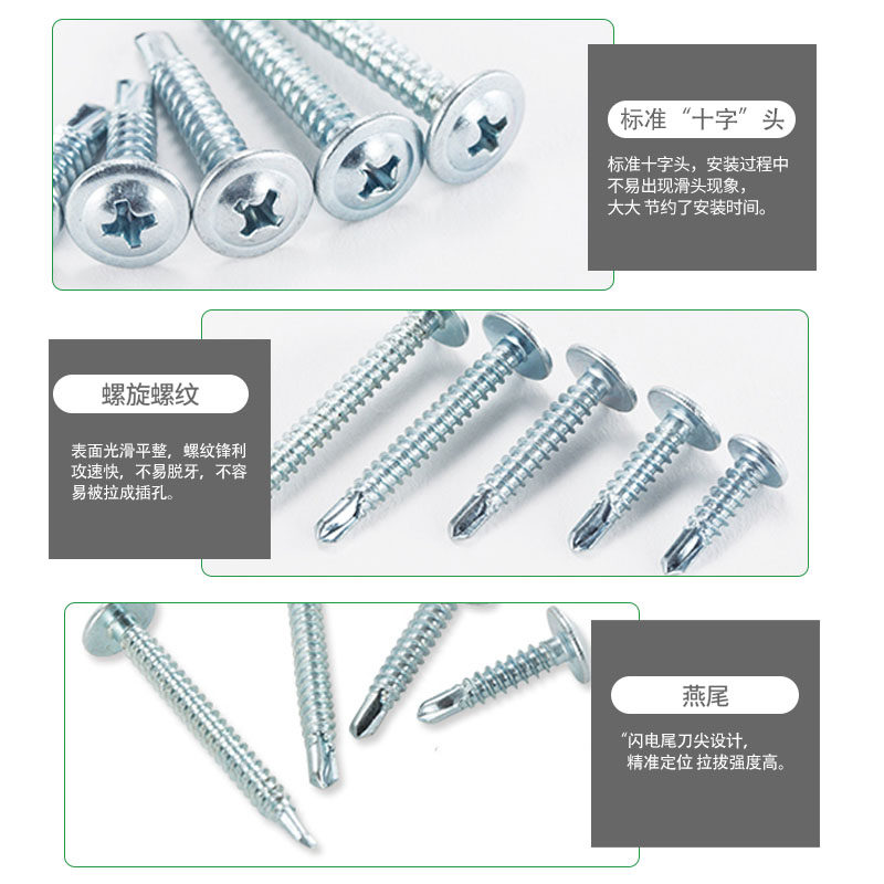 Macro big flat head drill tail screw color steel tile nail drill iron self-tapping self-drilling nail cross large round head galvanized nail M4 2