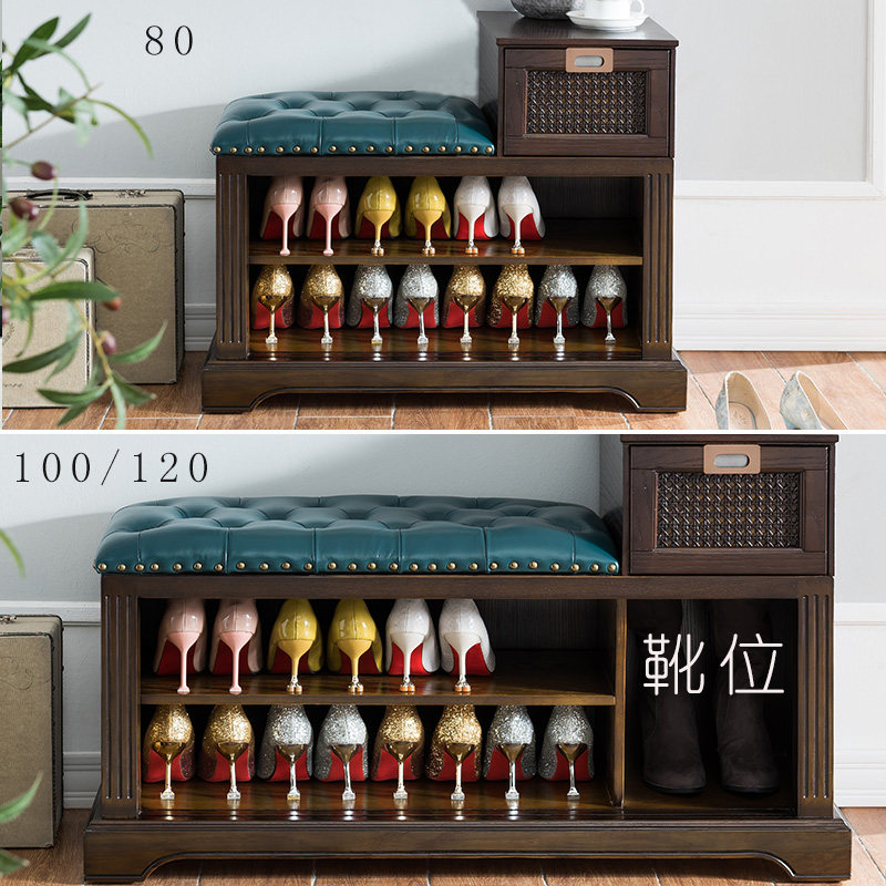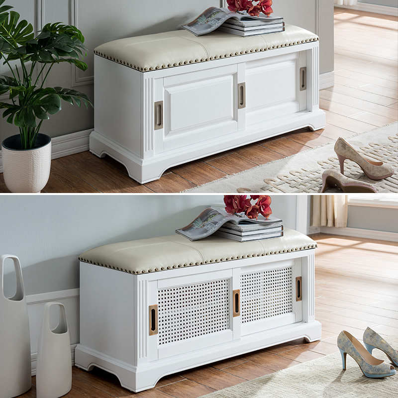Simple and light luxury rattan door change shoe stool solid wood leather shoe cabinet entry door porch sliding door storage stool door change shoe stool