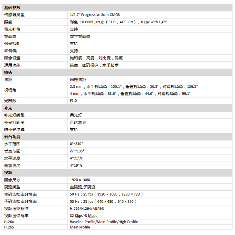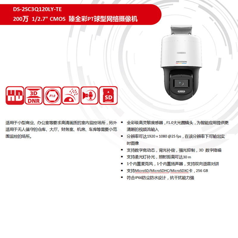 DS-2SC3Q120LY-TE Hikvision 2 4 million PoE full color waterproof two-way voice intercom ball machine