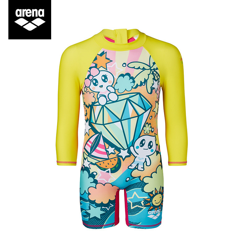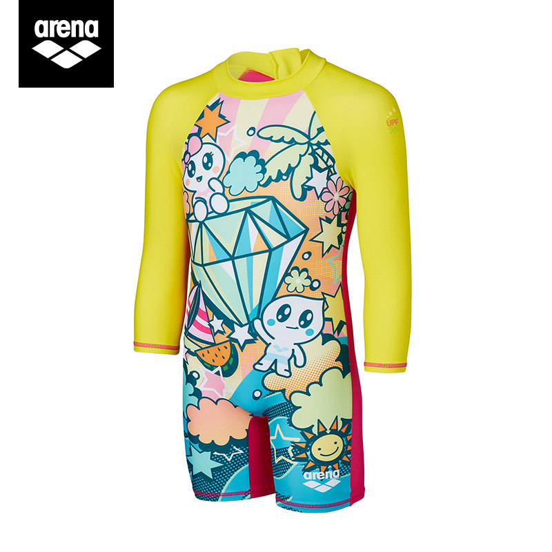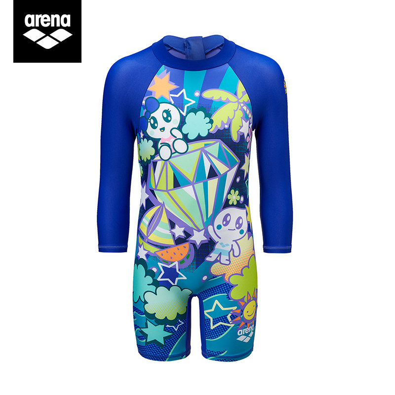 arena areena child swimsuit male and female summer long sleeve sunscreen conjoined conservative flat angle swimsuit CUHK Tong Swimming gear
