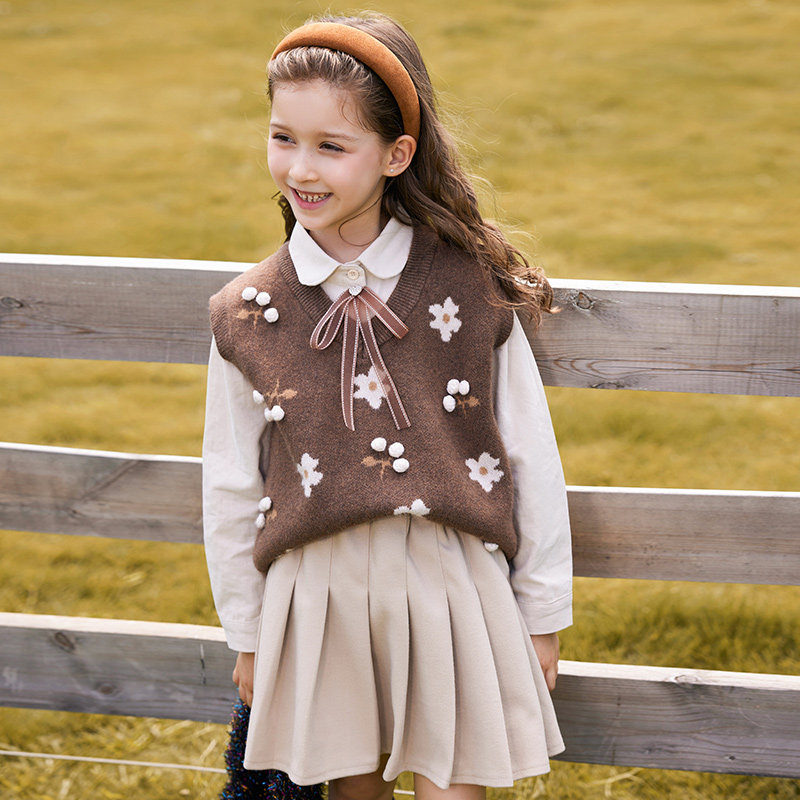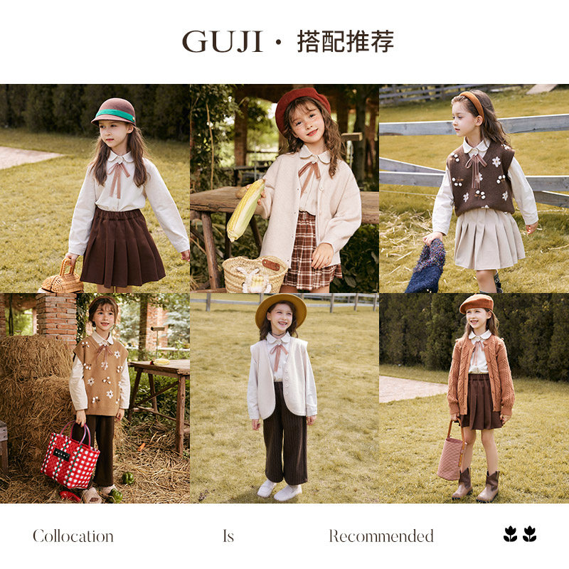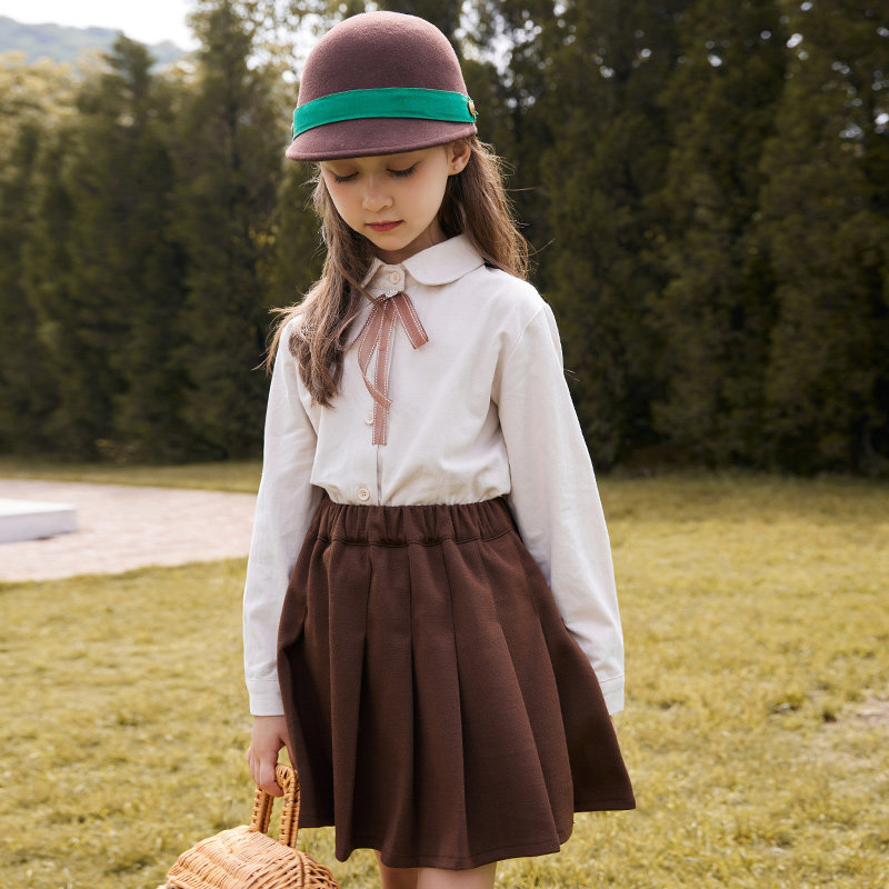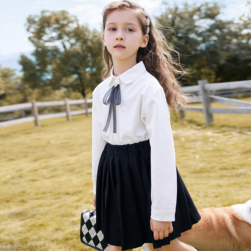 Girls white shirt spring and autumn 2022 new baby girl lapel shirt thin section primary school students Western style college wind top