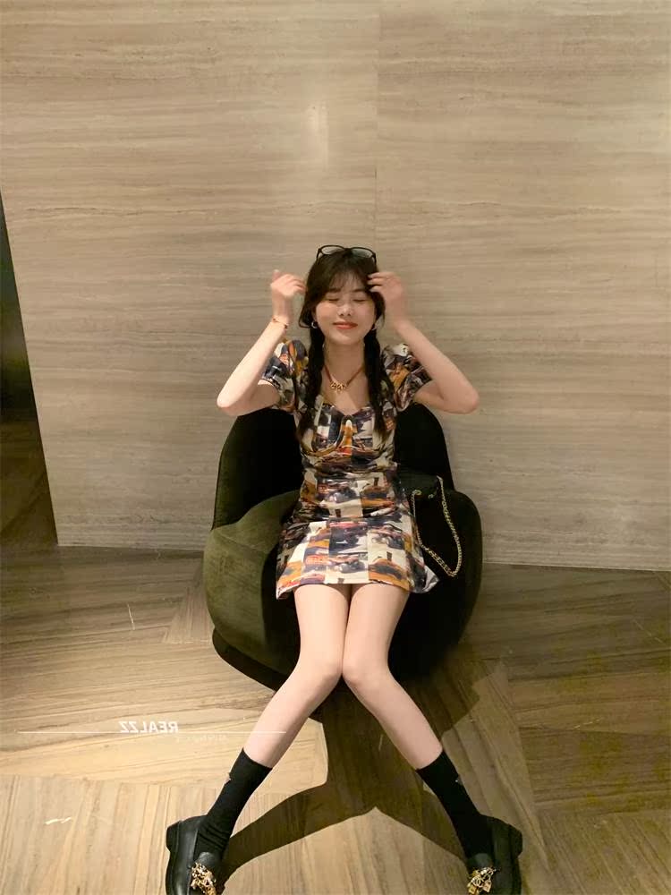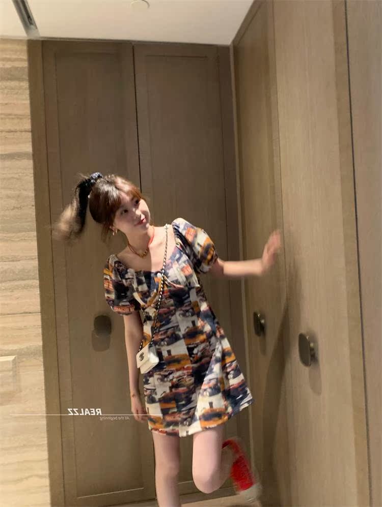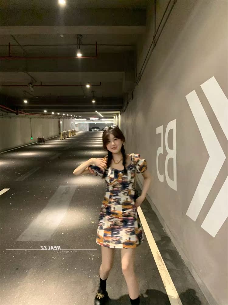 Dime 2022 Korean version of trendy Cool Girl Comeback Locomotive Poster THIN AND SHORT JEAN OCEAN DRESS