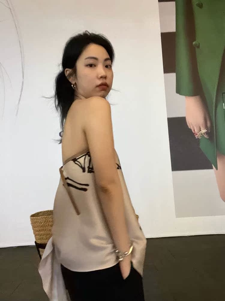 2022 new women's clothing Han version trendy 100 hitch a printed silk scarf-style blouse with a summer sensation