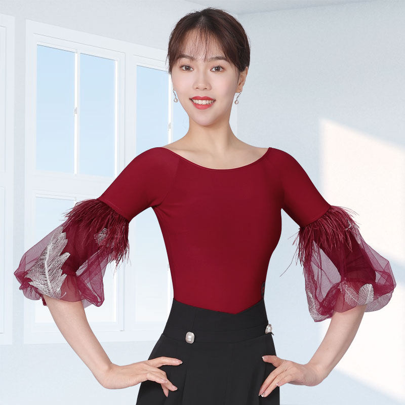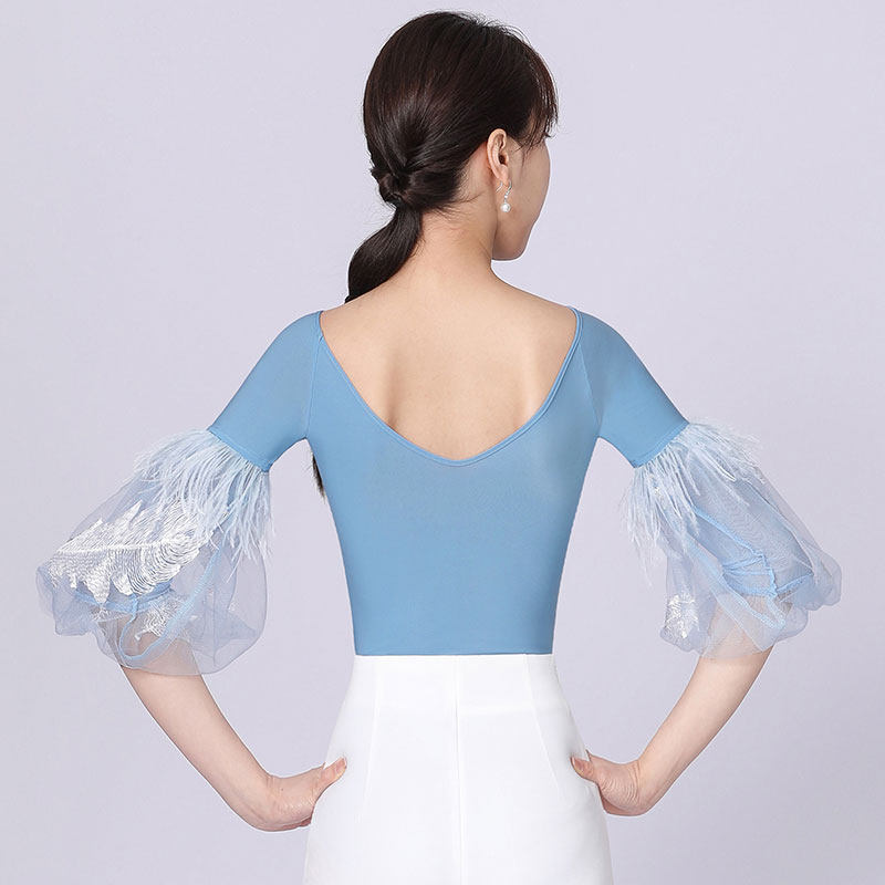 One word collar ostrich hair bubble middle sleeve light blue one word collar ostrich hair bubble middle sleeve wine red One word collar ostrich hair bubble middle sleeve black