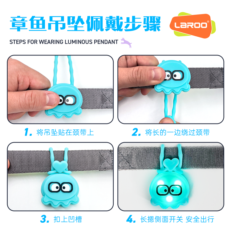 LaRoo super cute octopus pendant pet night walking dog light-emitting pendant dog anti-lost LED collar supplies