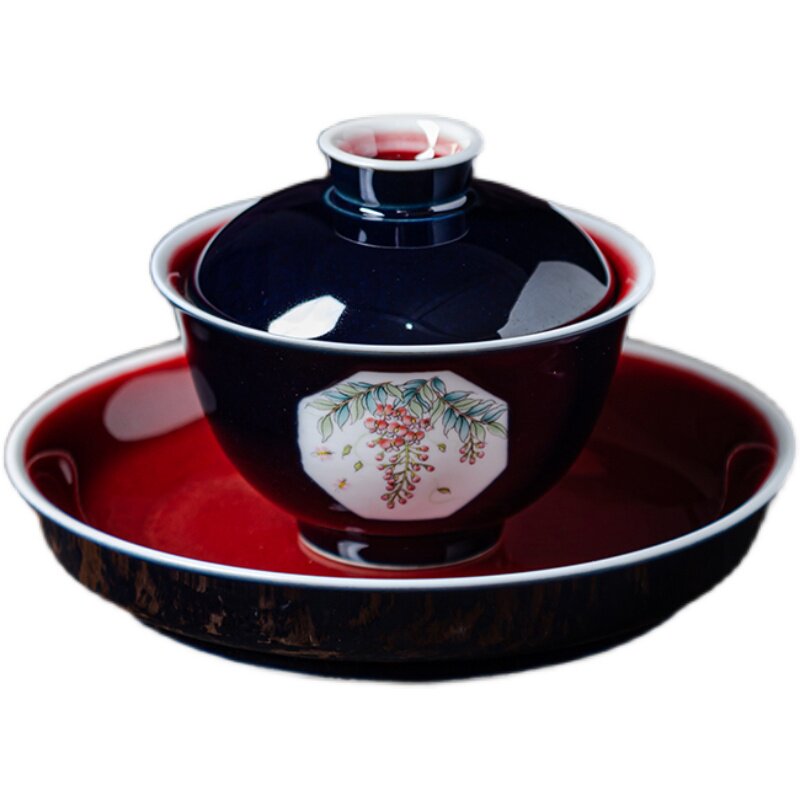 Jingdezhen Jingdao Jiblue glaze three to cover a cup of tea cup ceramic household with hand-made tea bowl kunfu tea toilet to prevent hot hand open window