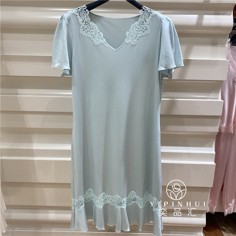 Salte LN2012 female cotton mulberry silk comfortable pure color minimalist home thin sleeping dress 2180-Taobao