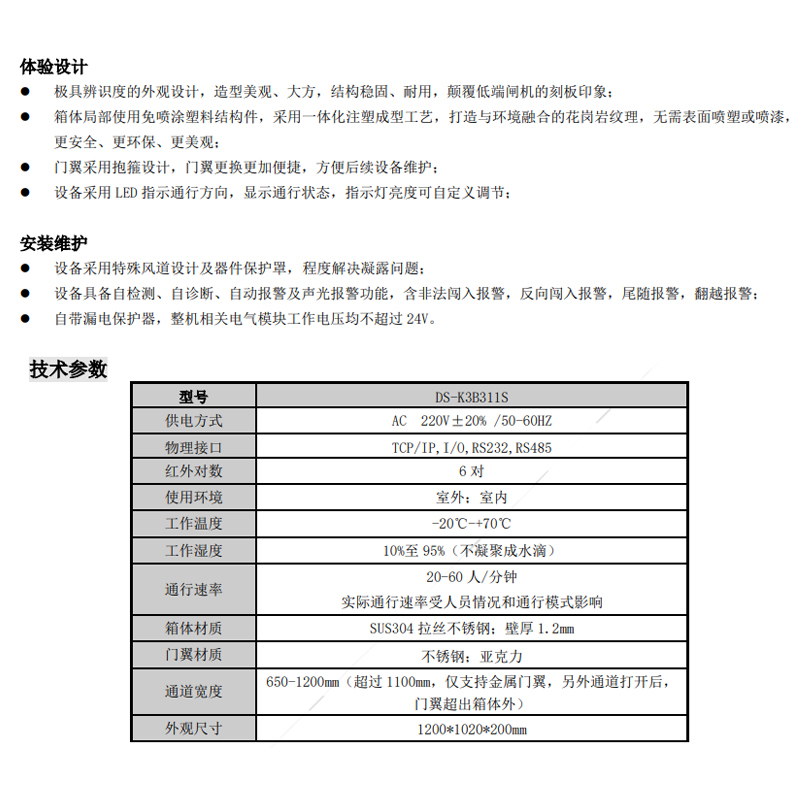 Hikvision DS-K3B311S-L Pa pedestrian entrance and exit anti-collision infrared sensor fence machine