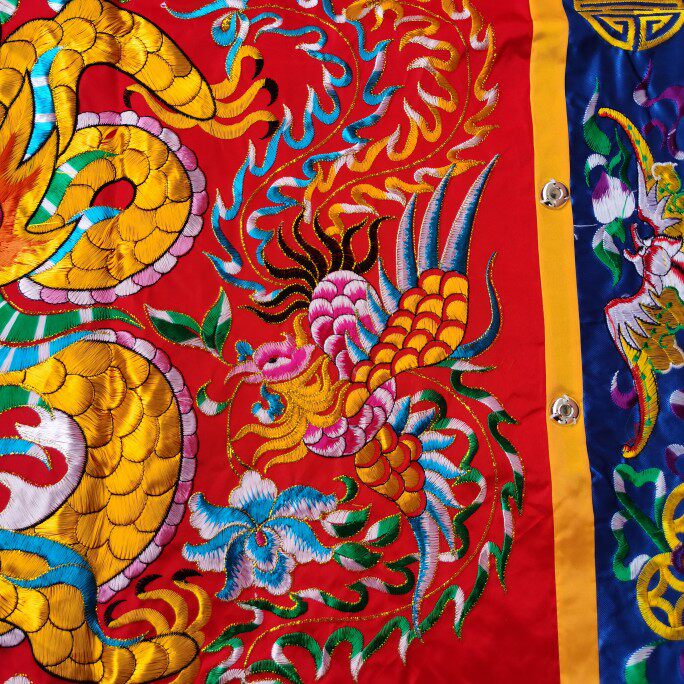 Taiwan version of the dragon and phoenix table skirt blue bat side embroidery dragon and phoenix table around the gods for the table dragon and phoenix Chengxiang offerings