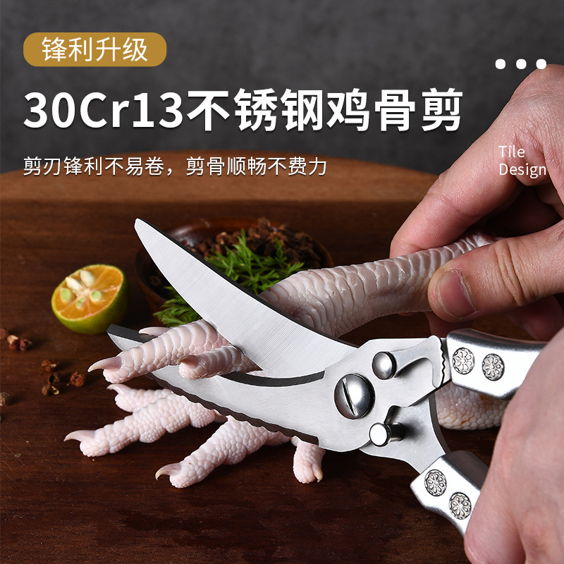 Amazon's new kitchen scissors stainless steel household chicken bone scissors multi-purpose food barbecue barbecue fish bone scissors