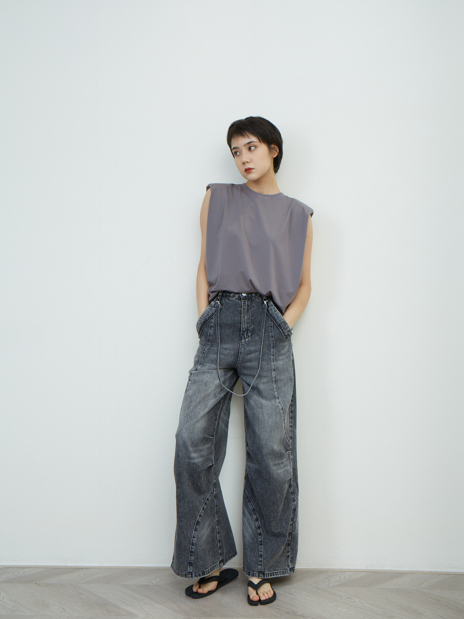 Handsome Ruffy Street Retrospective Doing old severe washing cutting and cutting loose legs open forklift tuned jeans