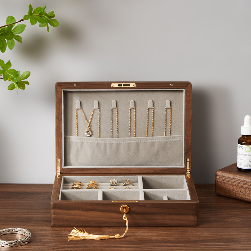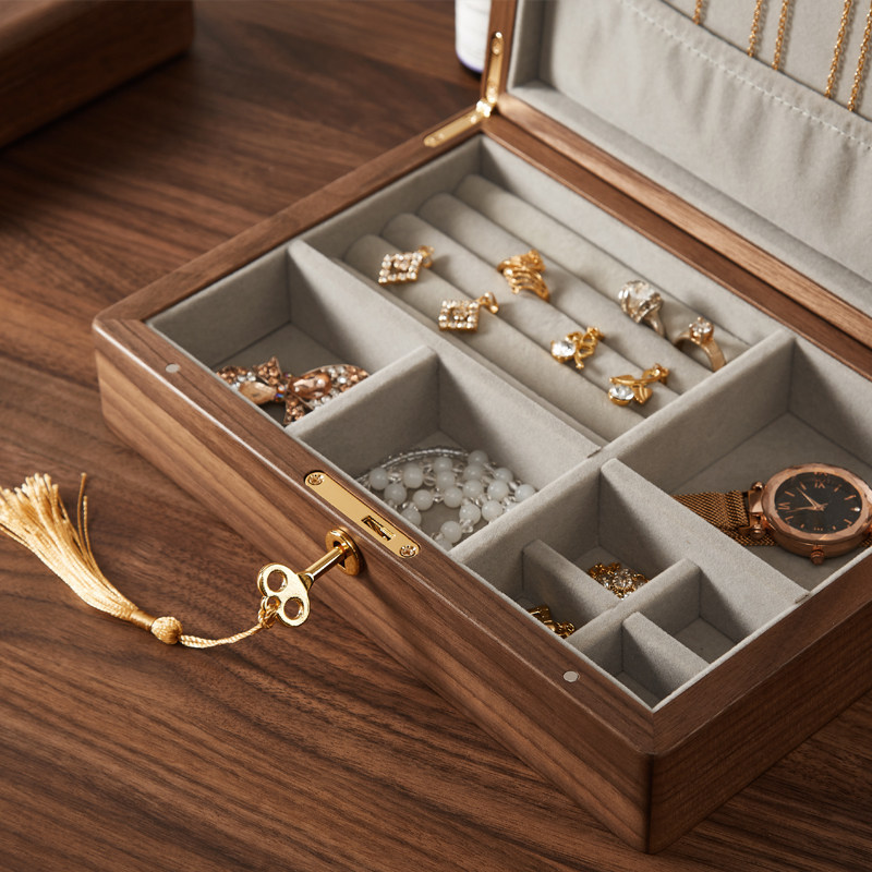 Solid wood jewelry box 2022 new lock earring jewelry storage box high-end exquisite ring anti-oxidation jewelry box