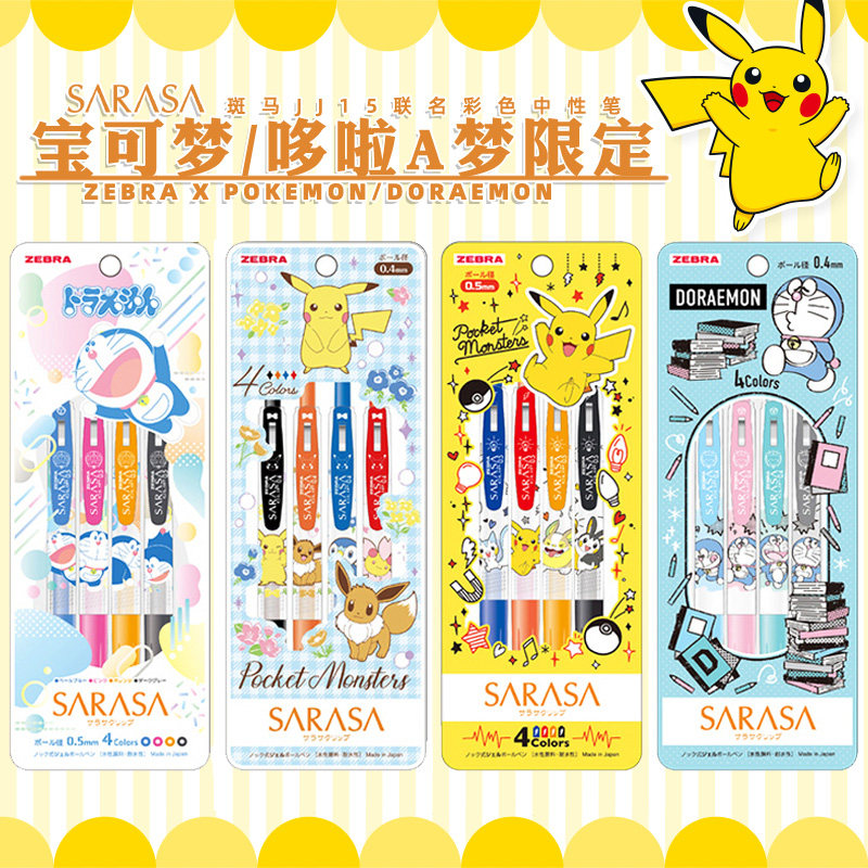Limited Japan ZEBRA zebra * Pikachu Doraemon JJ15 press gel pen set color water-based pen