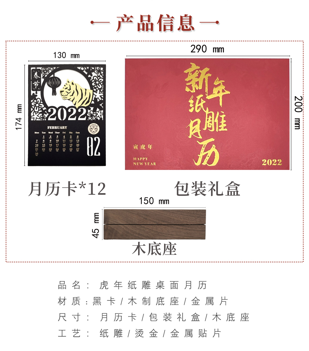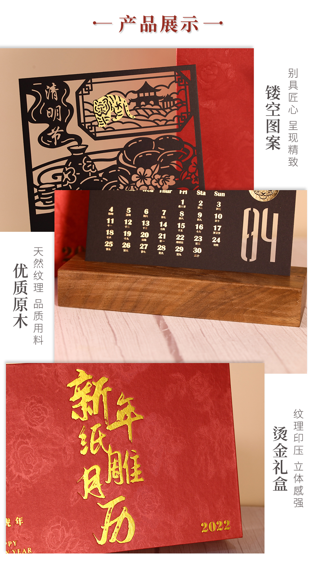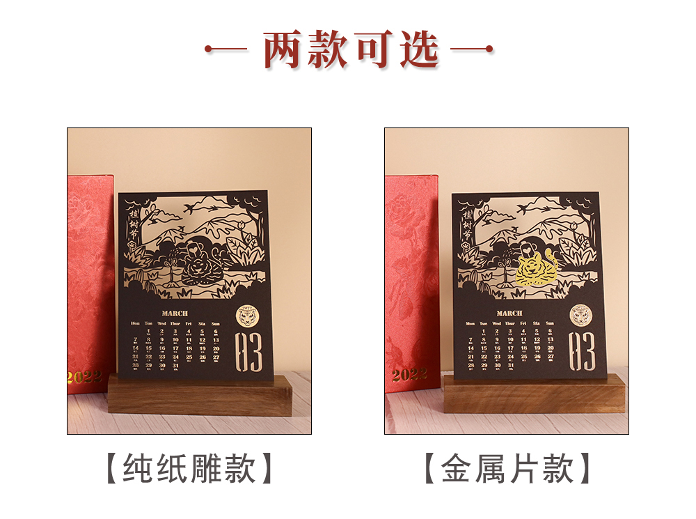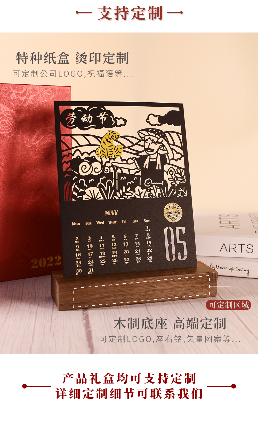 2022 Year of the Tiger paper carving calendar creative new national style desktop wooden ornaments company gift custom logo