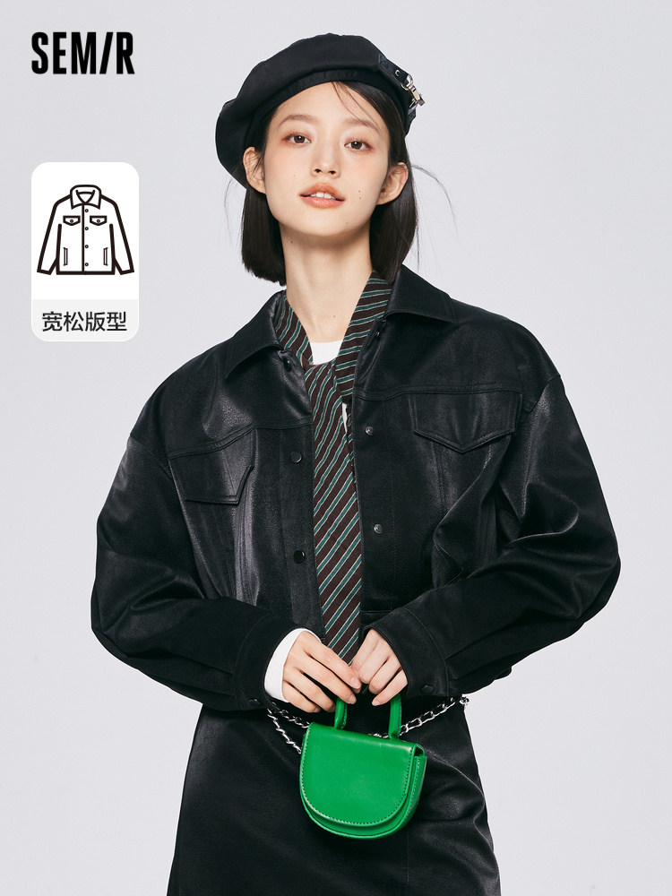 Semir jacket women's short texture pu imitation leather cool wind niche 2022 autumn new loose jacket fashion cool