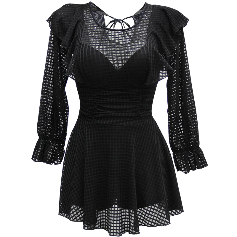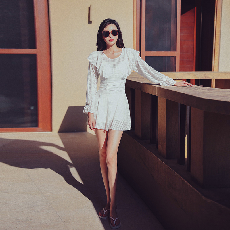 Long-sleeved swimsuit women's one-piece show thin and cover the belly conservative 2022 new summer high-end sense slightly fat girl cover meat swimsuit