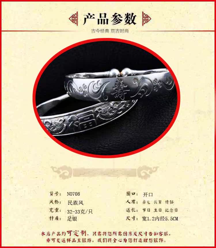 Wenze Centenary Silver Bracelet Silver Decoration Fusuu Kukong 99 Silver Bracelet NOJ708