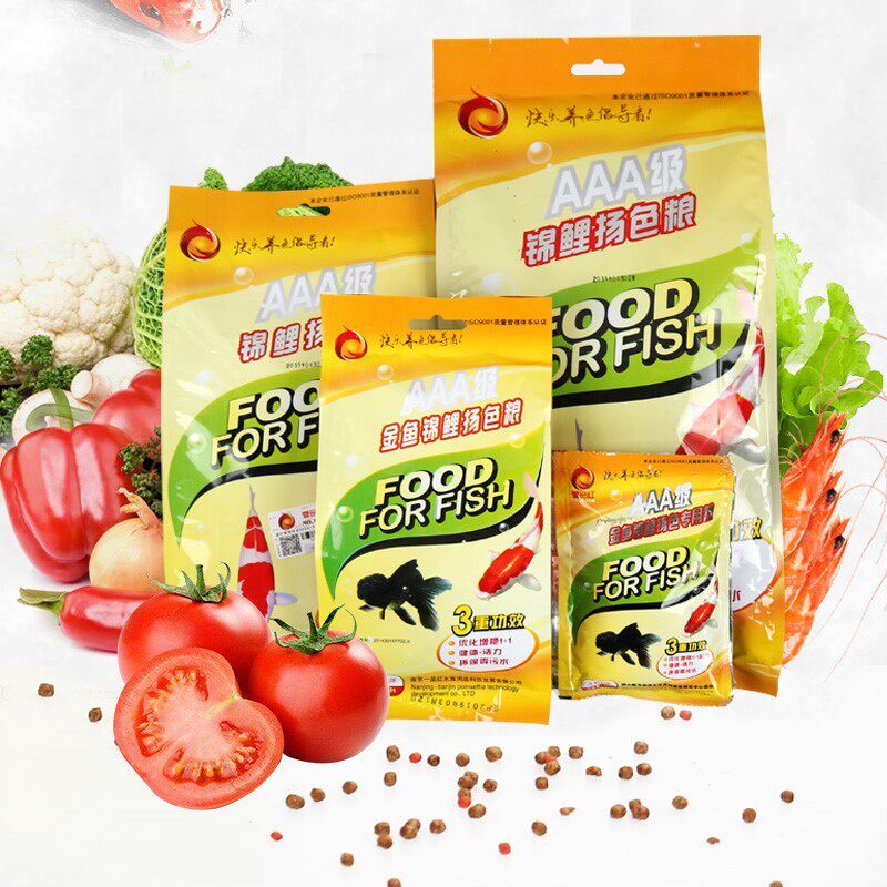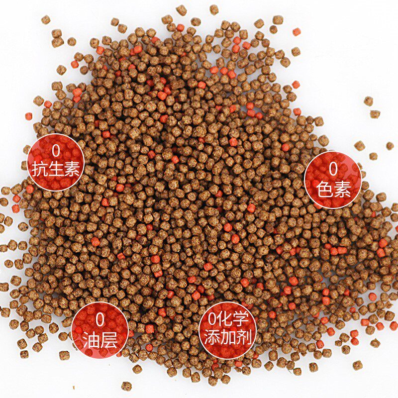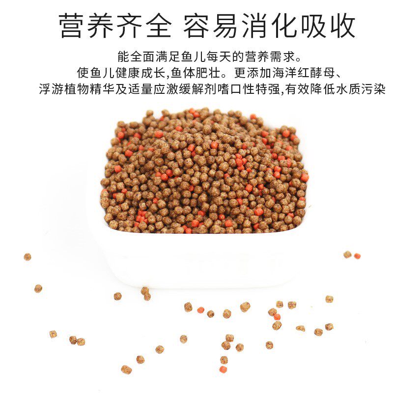 A piece of red fish eating koi feed goldfish ornamental fish and shrimp spirulina colored fish grain general type
