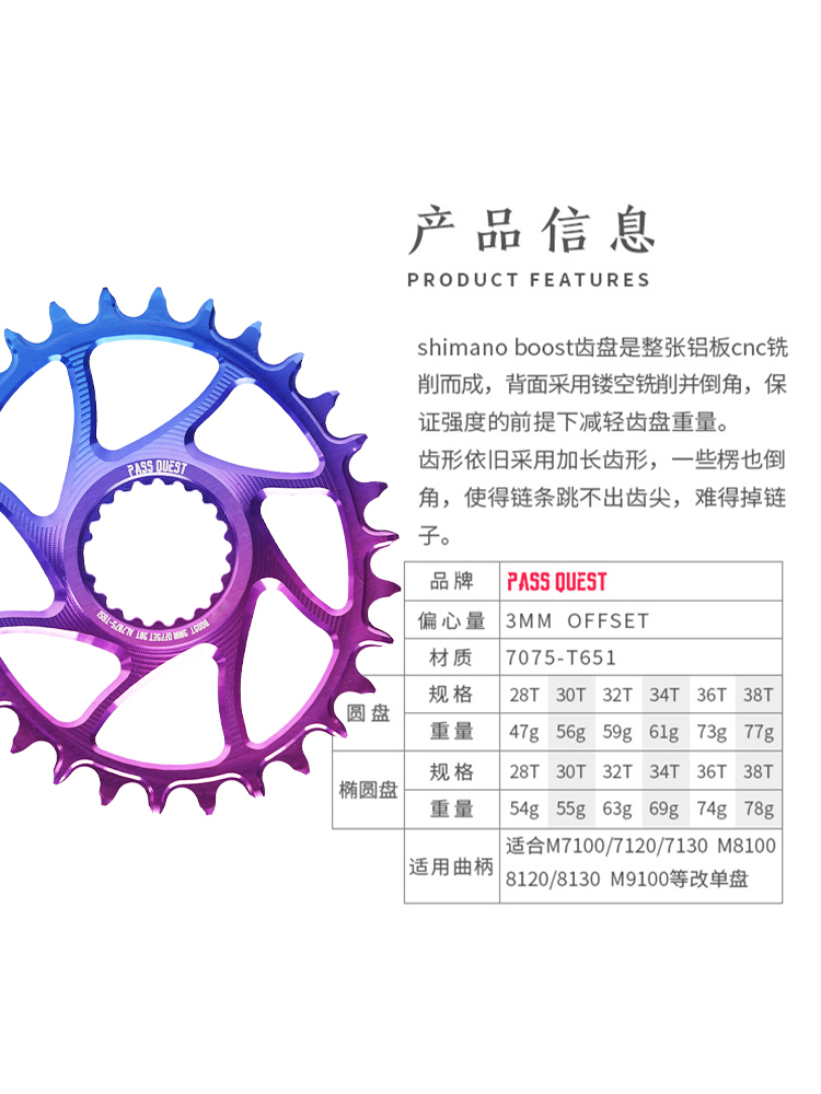 PASS QUEST dazzling straight up 12 speed boost m7100 8100 9100 disc with positive and negative tooth disc