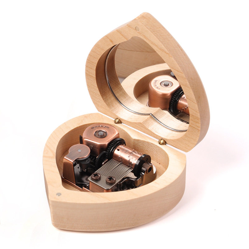DIY lettering love shape with mirror music box music box decoration walnut wooden birthday gift