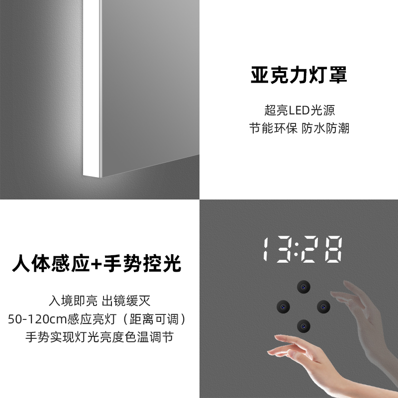 Smart bathroom mirror led with light shining mirror washbasin anti-fog mirror toilet hanging wall-style long bathroom mirror-Taobao
