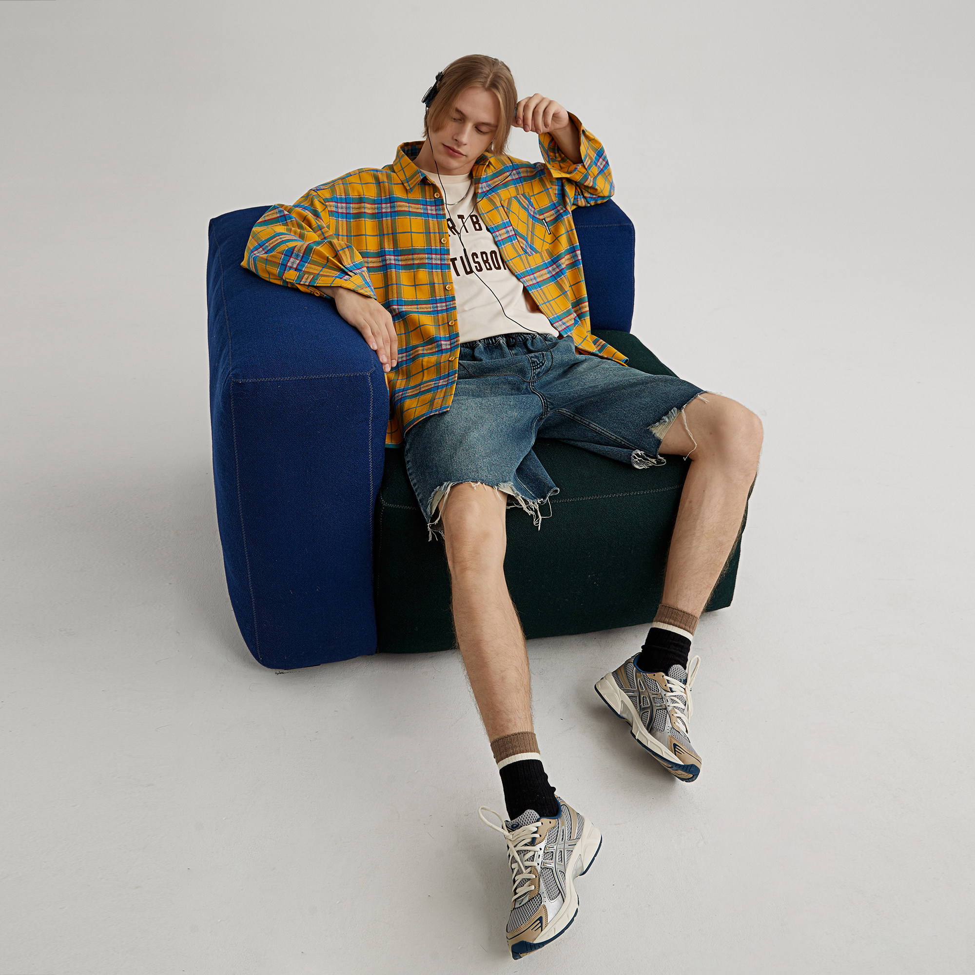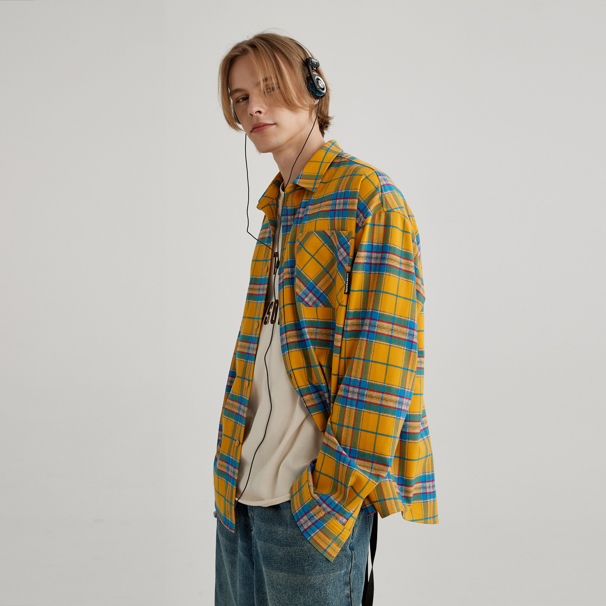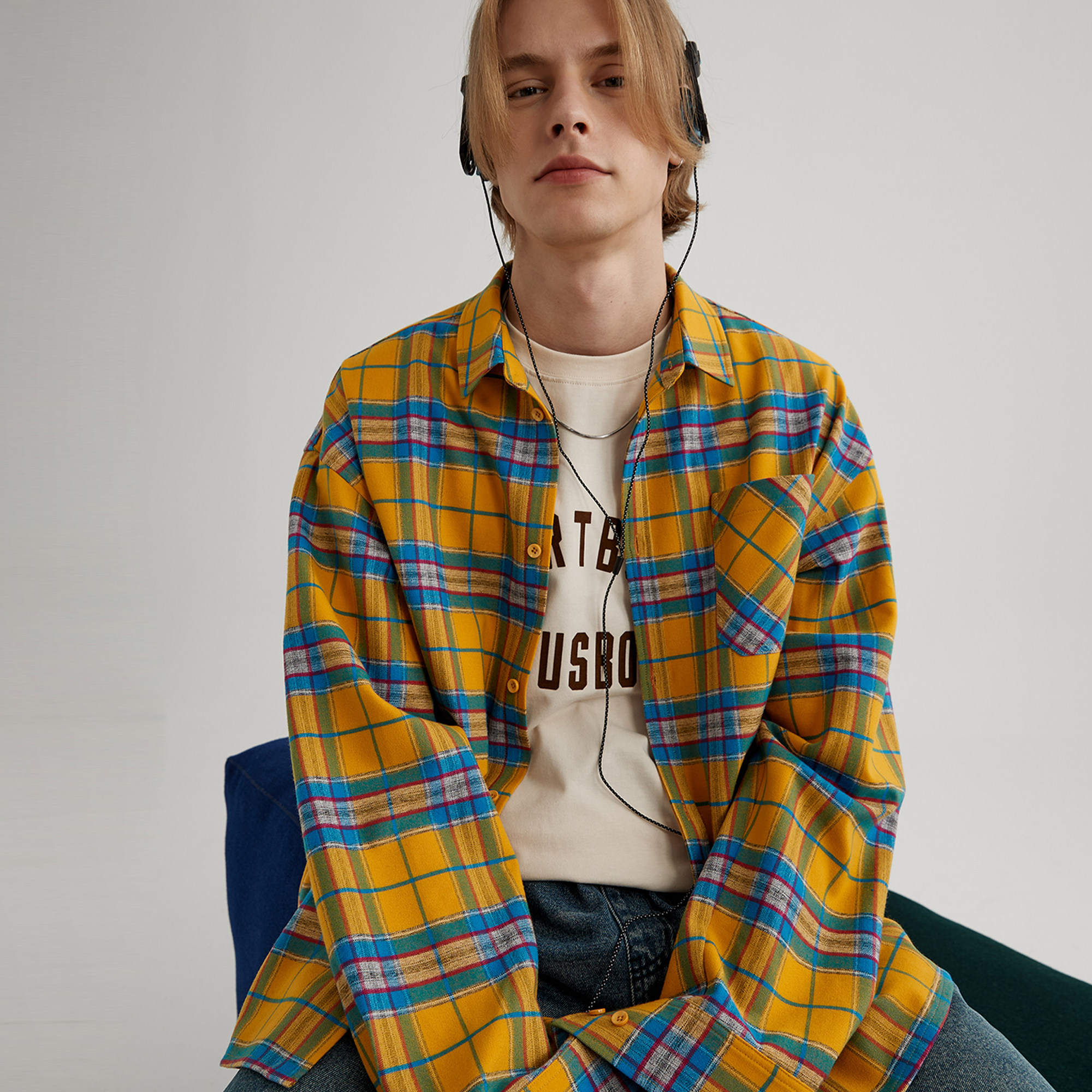 HeartBoon Autumn Yellow Plaid Long Sleeve Shirt American Comeback Lovers Casual Coats Men And Women Boomers-Taobao