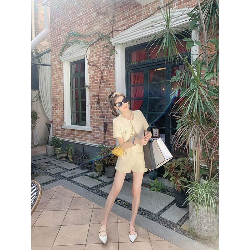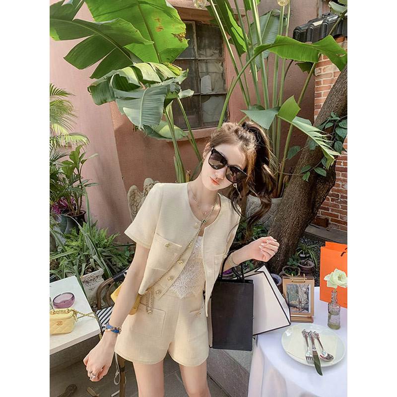 Korean system High feeling small fragrance Wind thin net red suit Women's summer 2022 new small sub-jacket shorts Two sets