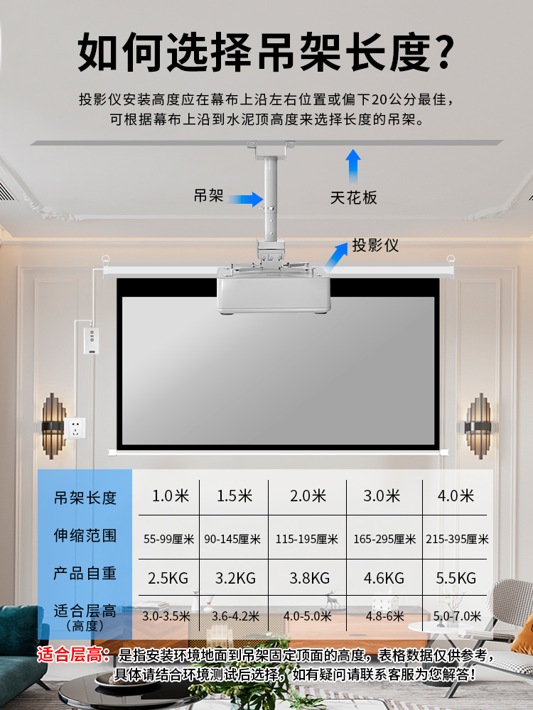 Projector Bracket Universal Bracket Projector Universal Ceiling Mounting Fixture Home Multi-functional Extended Adjustable Telescopic Lifting Hanger Epson BenQ Dangbei Engineering Projection Hanger