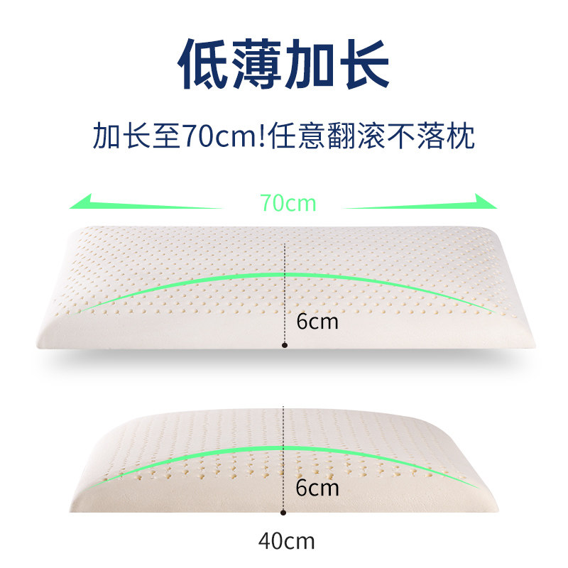 Thailand latex pillow bread low thin pillow single lengthened 70cm flat low pillow adult rubber pillow cervical vertebra