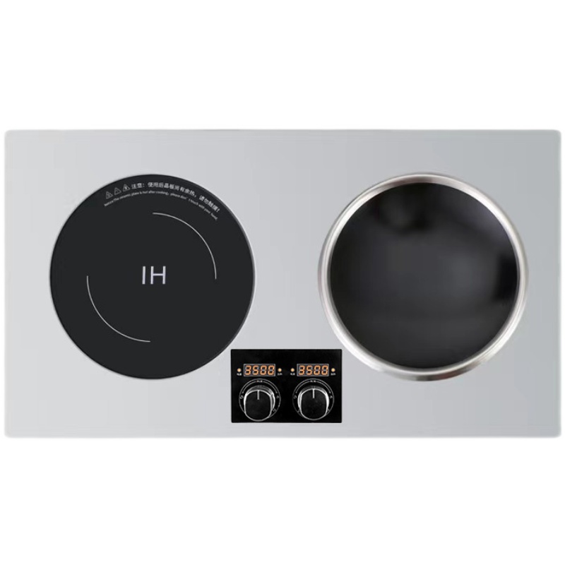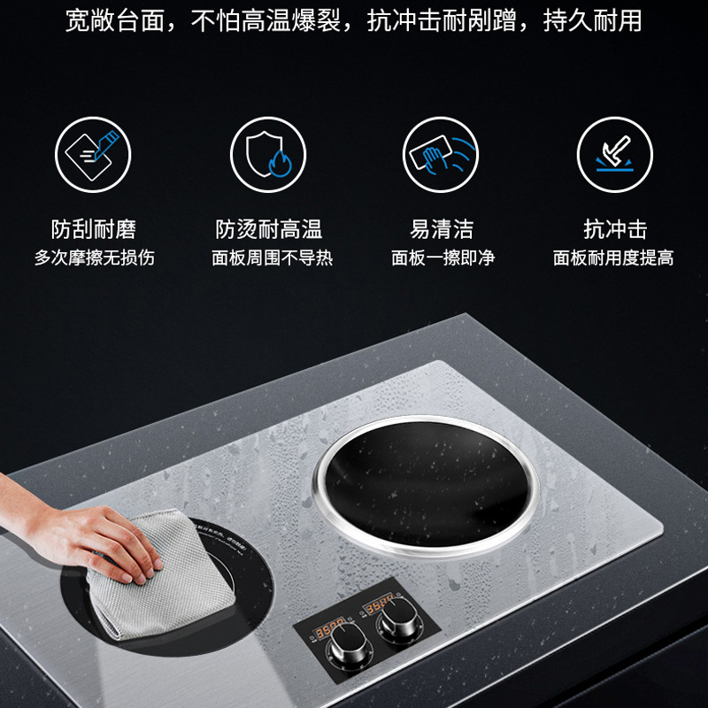 Induction cooker embedded double-port gas furnace household one flat and one concave stainless steel double-headed 3500W black crystal furnace to boil water for heating and steaming