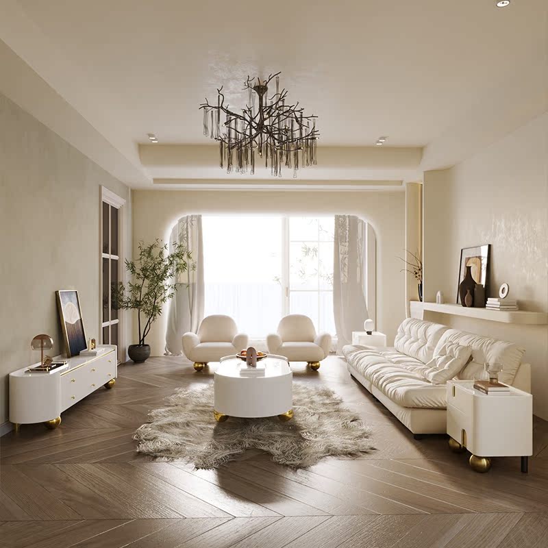 Light luxury TV cabinet coffee table combination modern minimalist living room small apartment oval Hong Kong-style bedroom paint slate floor cabinet