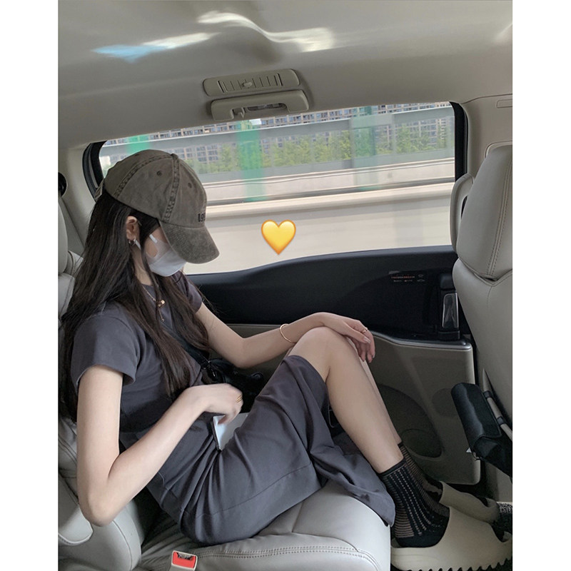 White Water Female Short Sleeve Open Fork Dress Woman Summer Temperament Superior hot girl with slim fit grey tight dress-Taobao