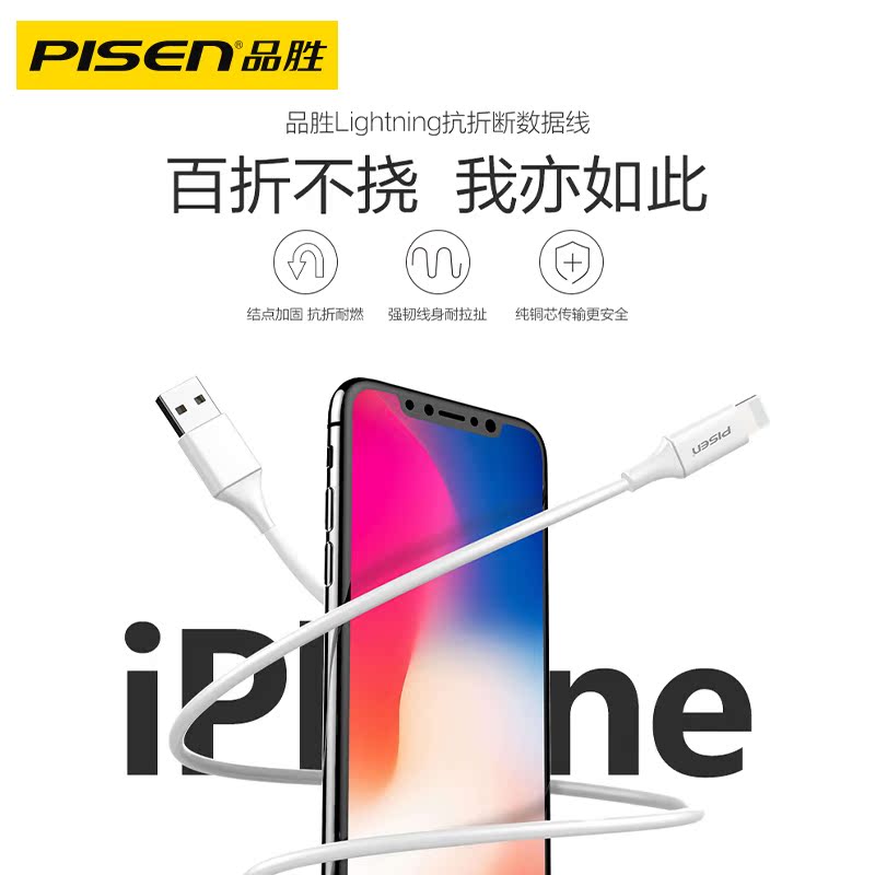 Pinsheng Apple data cable anti-break suitable for Apple 12 charging cable 11 device 6 mobile phone XS fast charge X lengthened XR single head 8p short iPad tablet 6s1 5 meters ios punch Max7