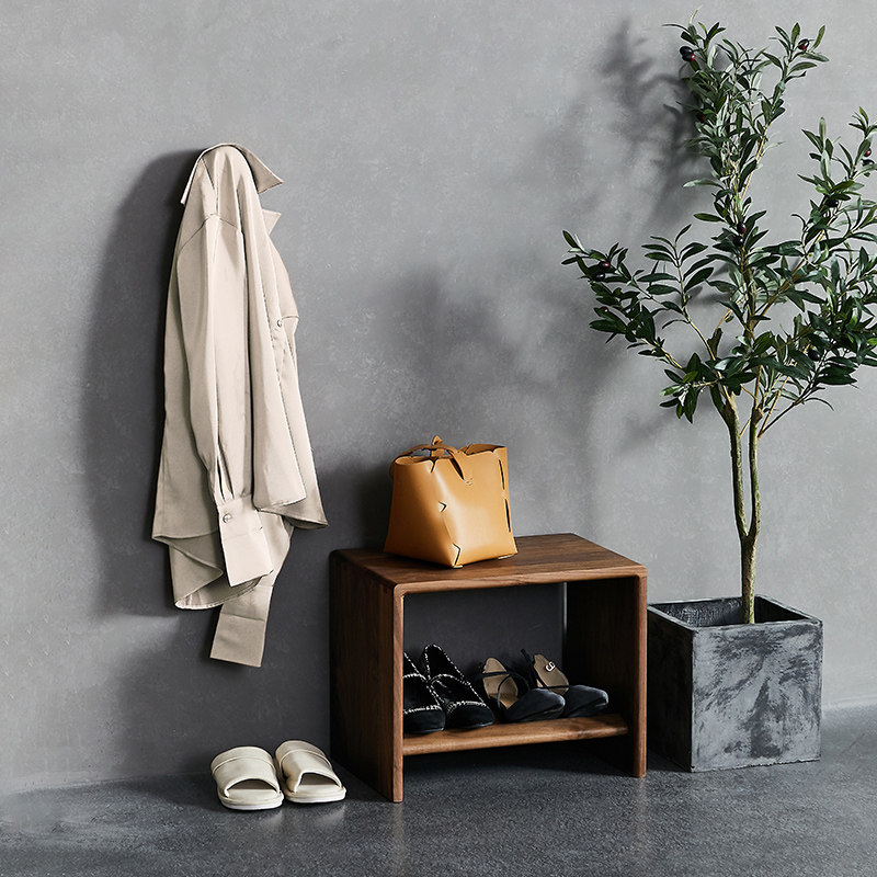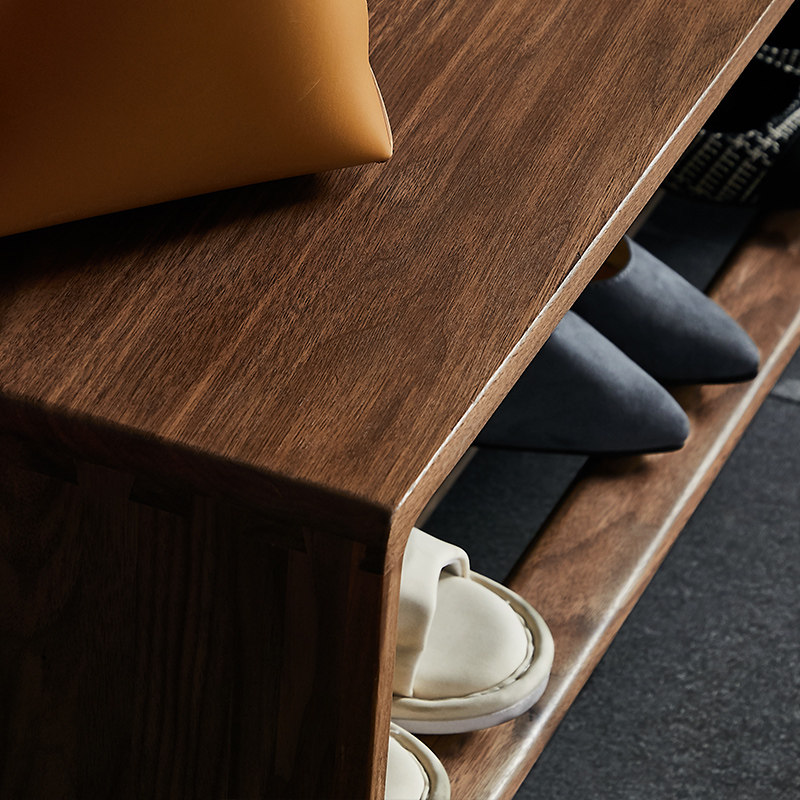 Black walnut color designer can sit at the door to change the shoe stool home door entry solid wood rectangular long stool