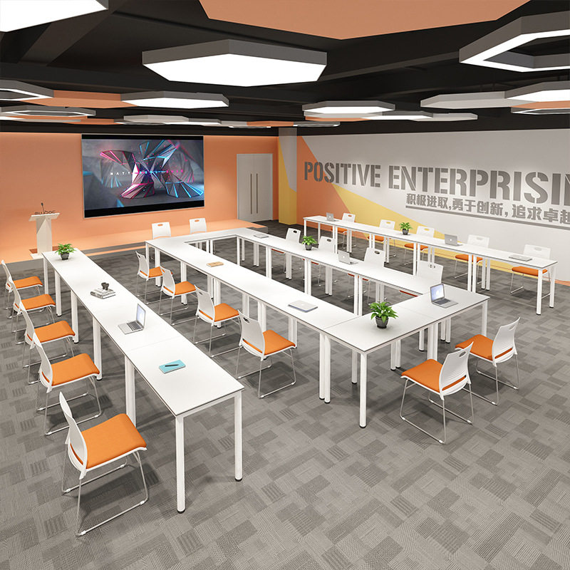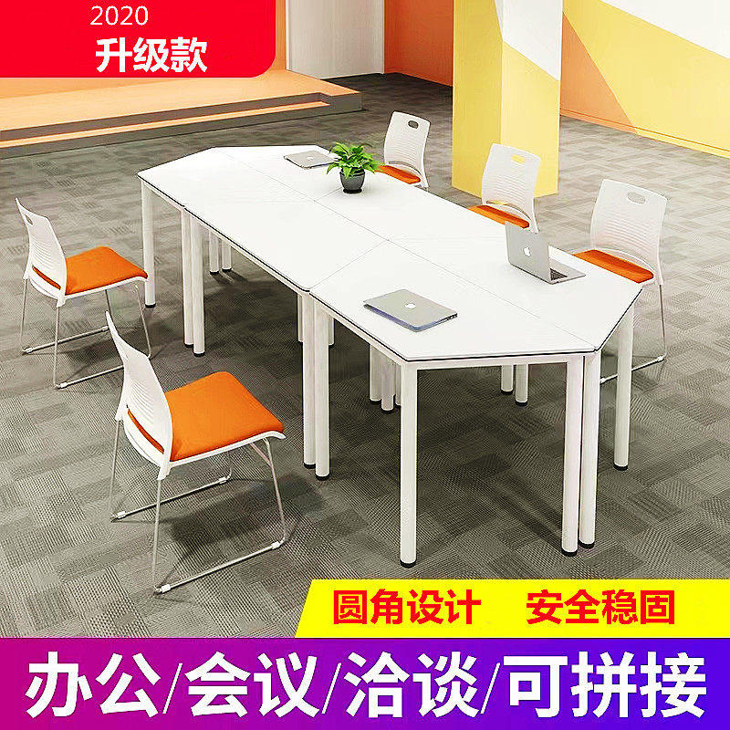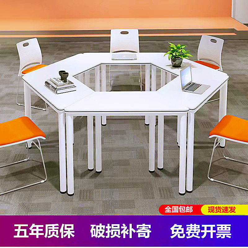 Hexagonal combination training table student trapezoidal splicing table multi-functional movable long table and chair negotiation conference table
