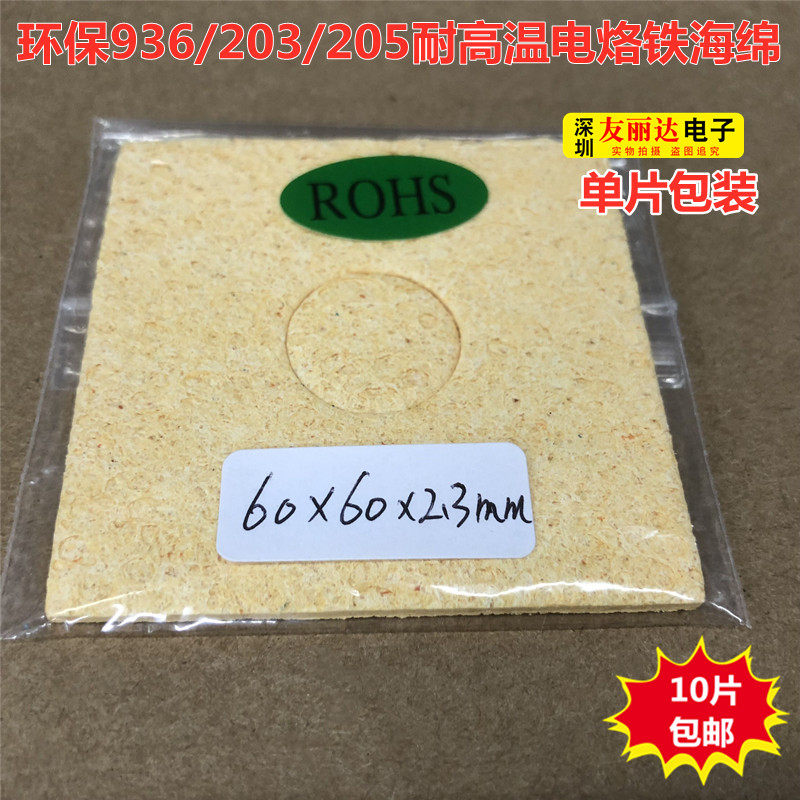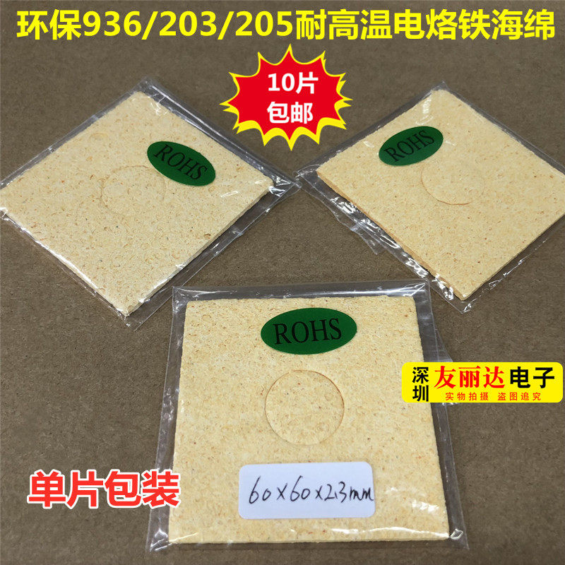 Single sheet fit 936 high temperature soldering iron sponge 203 thickened square iron sea cotton 205 clean sea cotton 10 sheet-Taobao