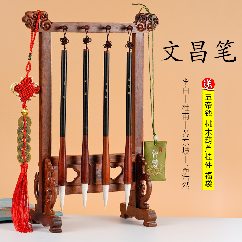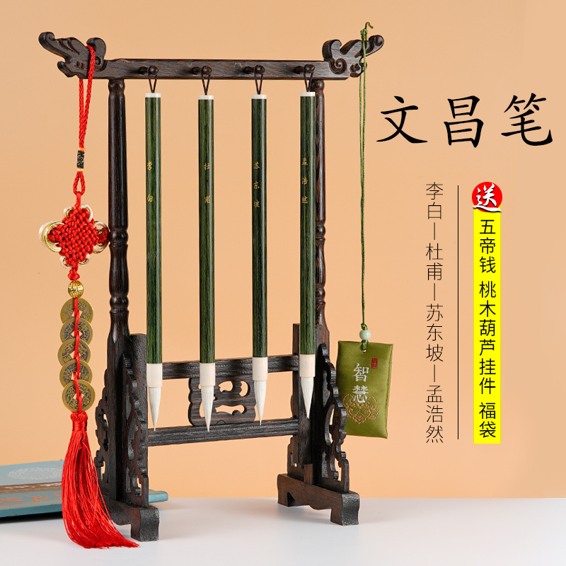 Wenchang writing brush 4 solid wood pen hanging suit with brush holder big millipen gold chart title student gift green Wenchang pen desk swing piece Li Bai Du Fu's four major celebrities Wenfang Four Treasure