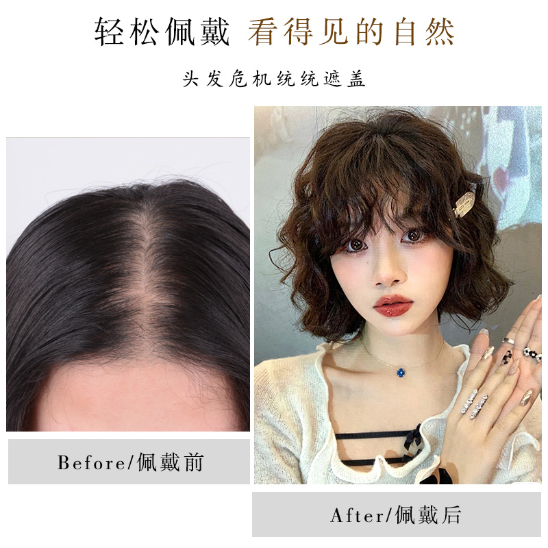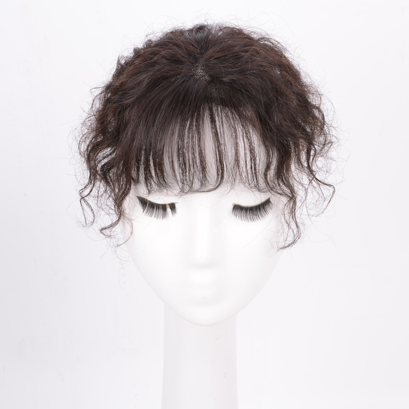 Full real hair Swiss net curly hair wig to increase hair volume, fluffy and thin, bangs, cover, white hair block female
